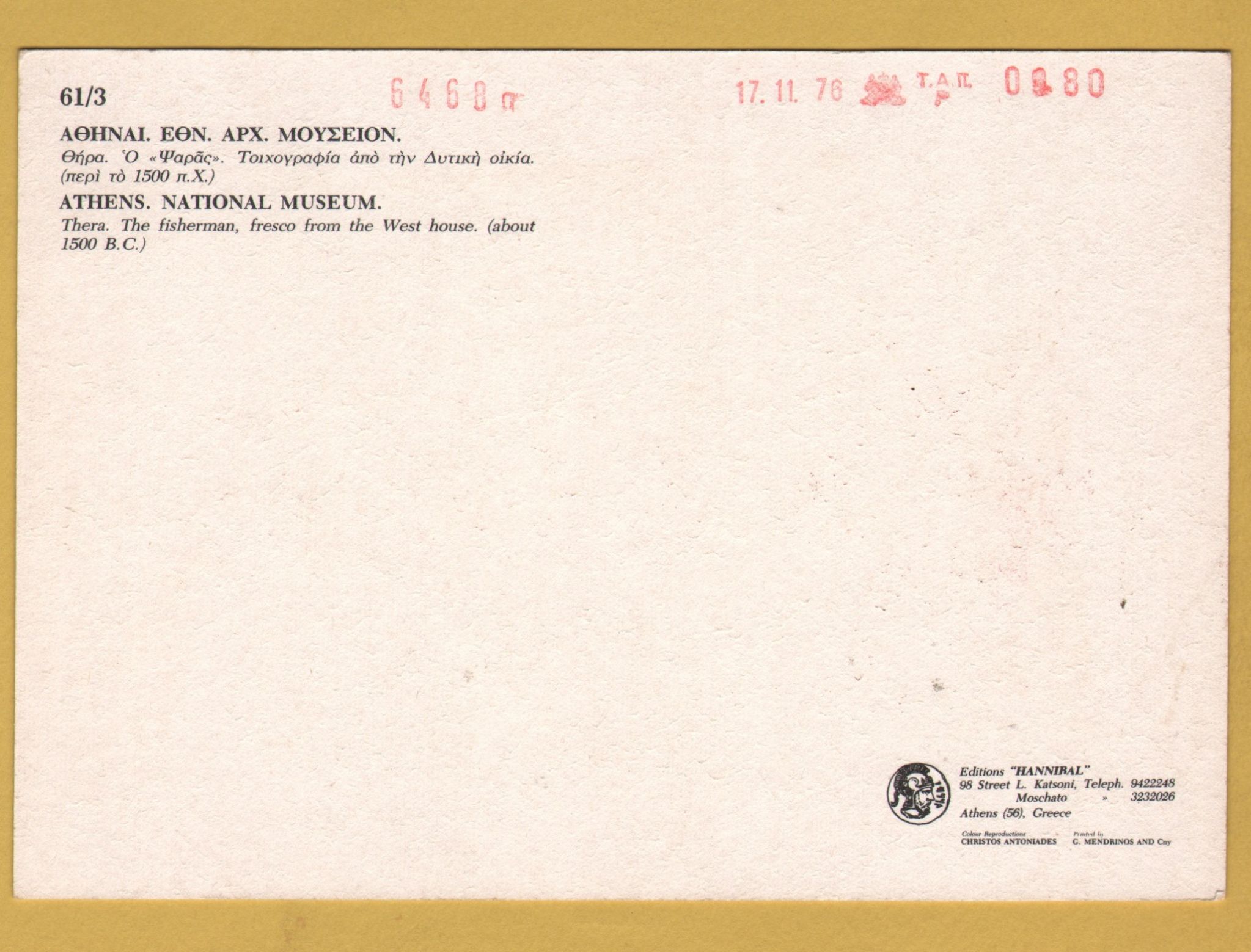 Tags: Athens National Museum, THERA, The Fisherman:Unused, Hannibal Postcard.