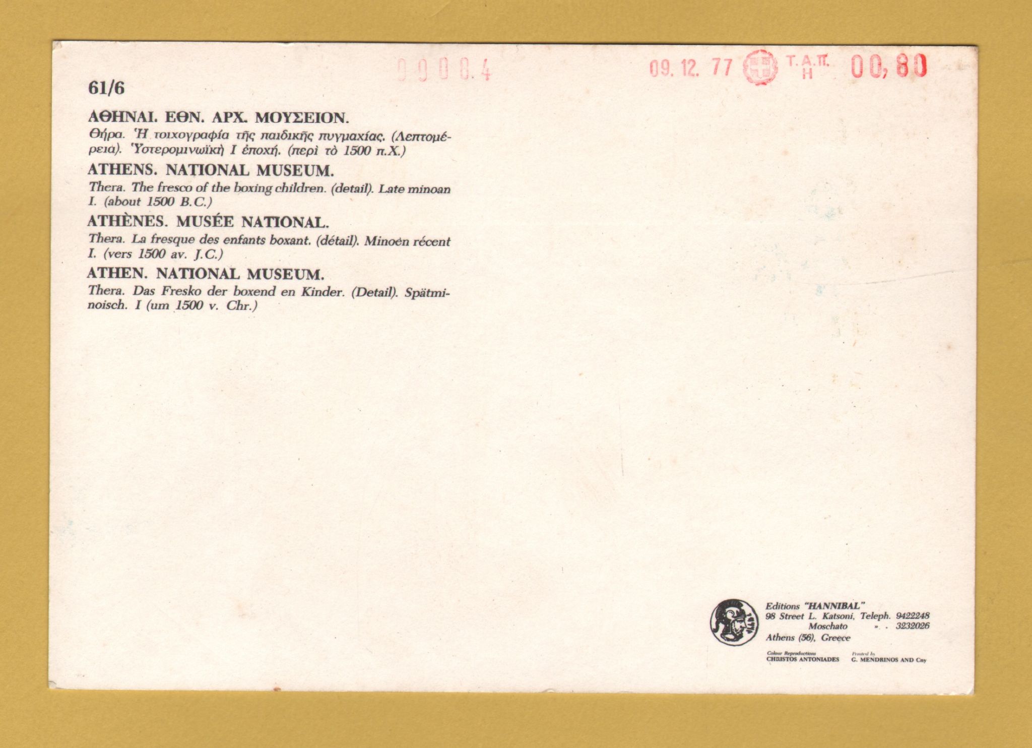 Tags: Athens National Museum, THERA, Boxing Children (detail), Late Minoan 1:Unused, Hannibal Postcard.