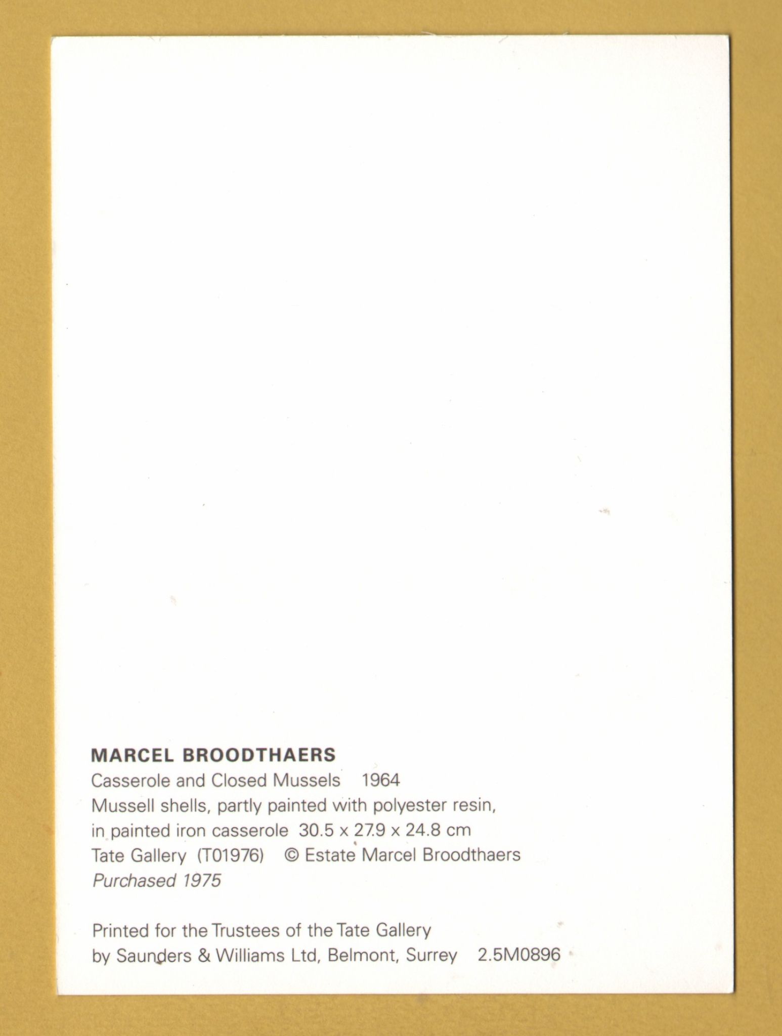 Tags: Casserole and Closed Mussels, Marcel Broodthaers, 1964, Postally, Unused, Tate Gallery, Postcard.