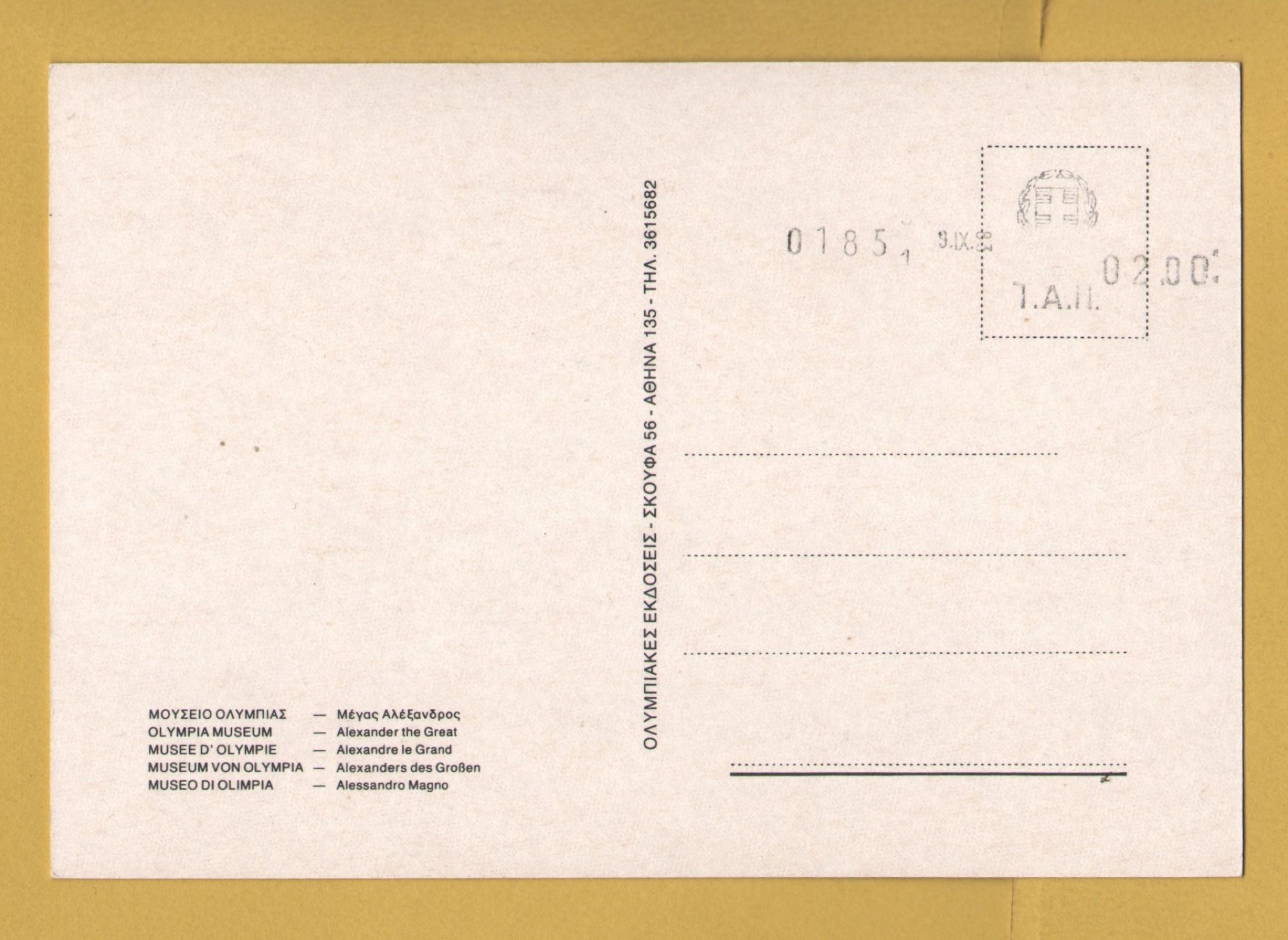Tags: Olympia Museum, Alexander the Great:Unused, Olympic Publications Postcard.