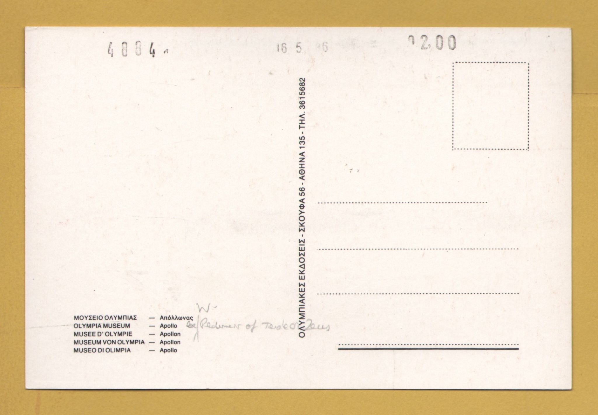 Tags: Olympia Museum, Apollo:Unused, Olympic Publications Postcard.