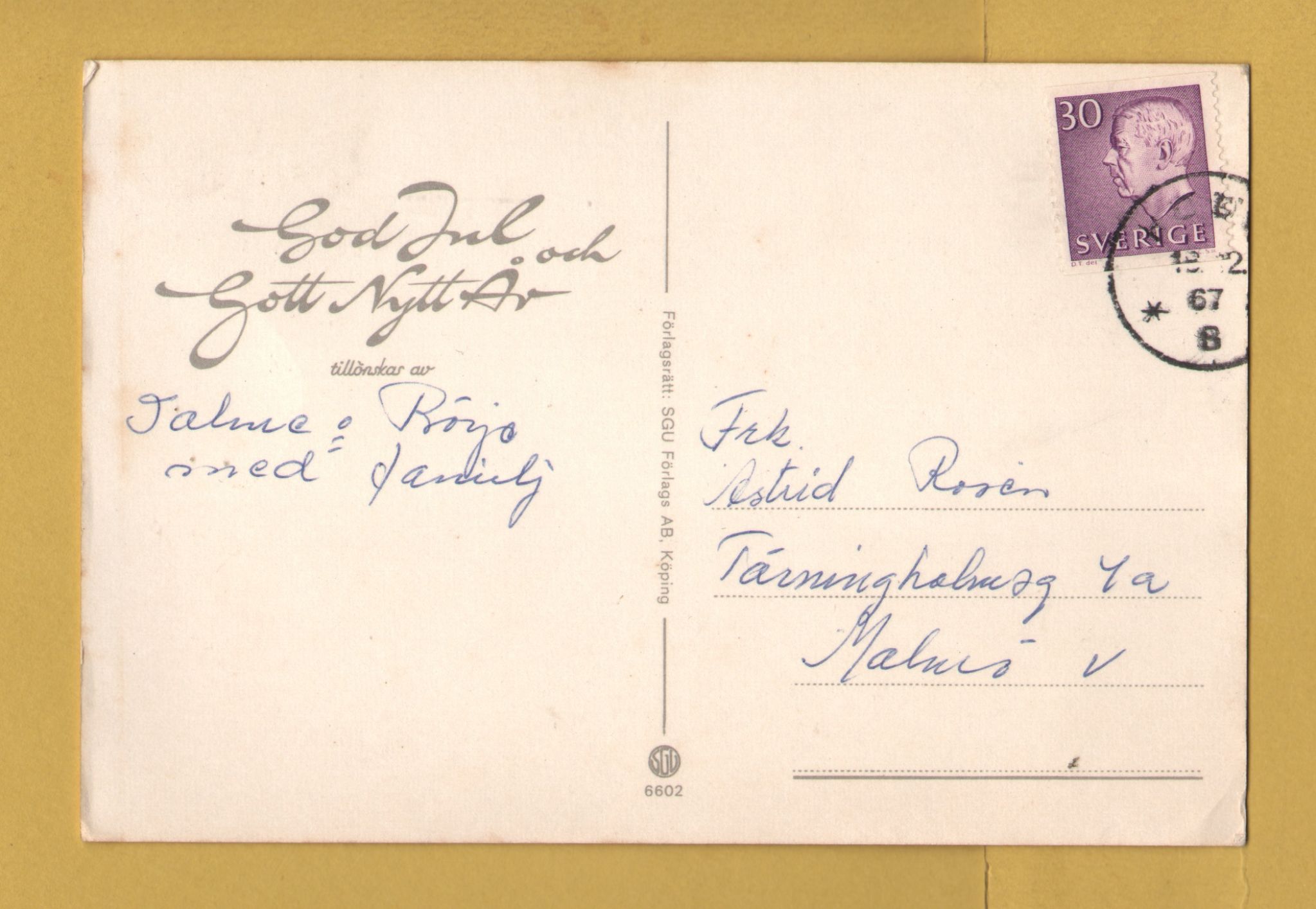 Tags: Merry Christmas, Happy New Year, Swedish Card:Used, 1967, SGV Postcard.
