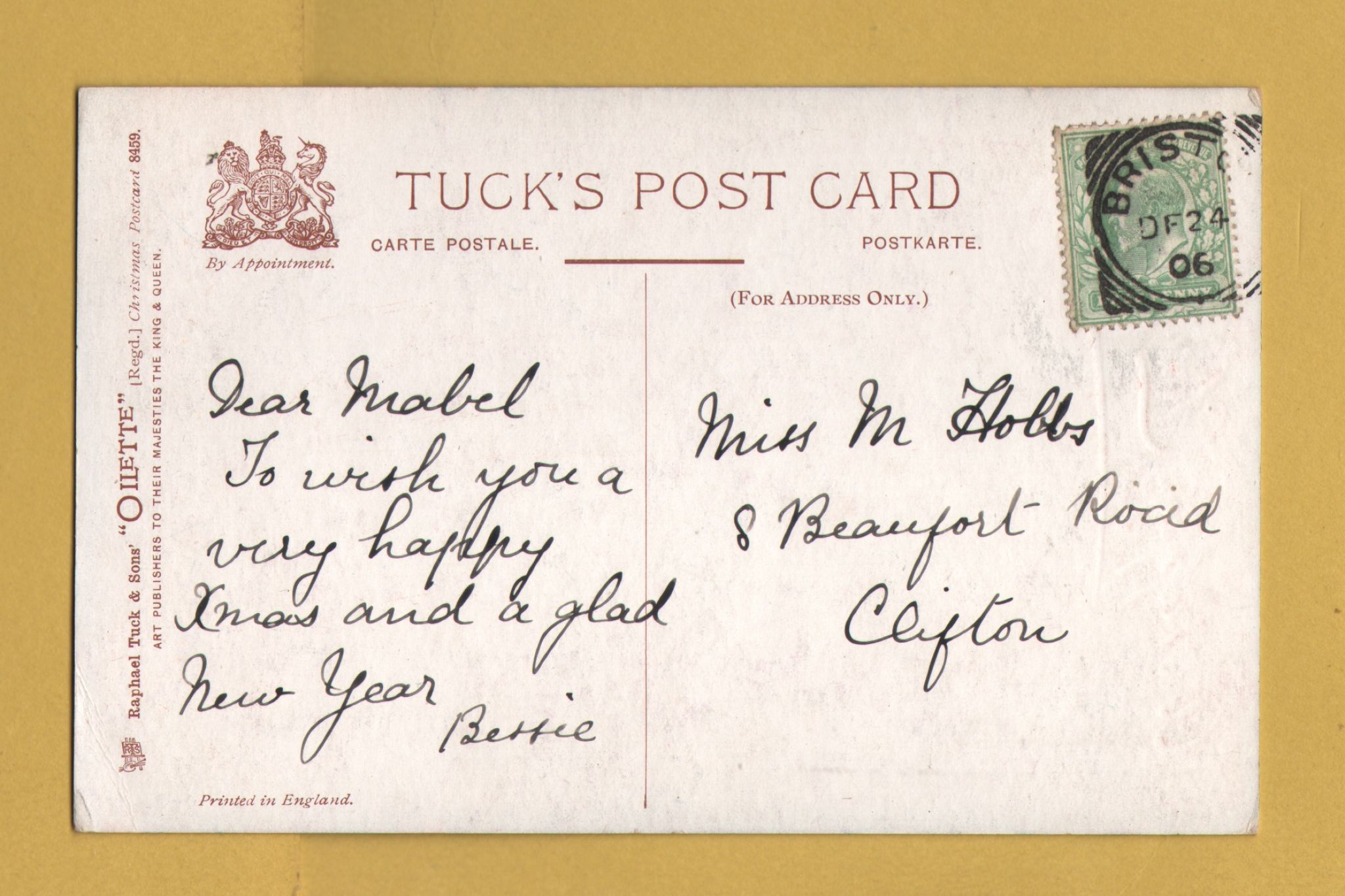 ``A Happy Christmas` - Oilette - 8459` - Postally Used-1906 - Raphael Tuck & Sons Postcard. ``A Happy Christmas` - Oilette - 8459` - Postally Used-1906 - Raphael Tuck & Sons Postcard.