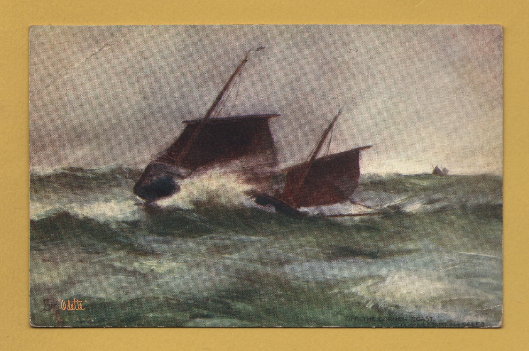 `Quaint Corners Series-St Ives - `Off The Cornish Coast, (A St Ives Boat In A Gale)` - Oilette - 6249`