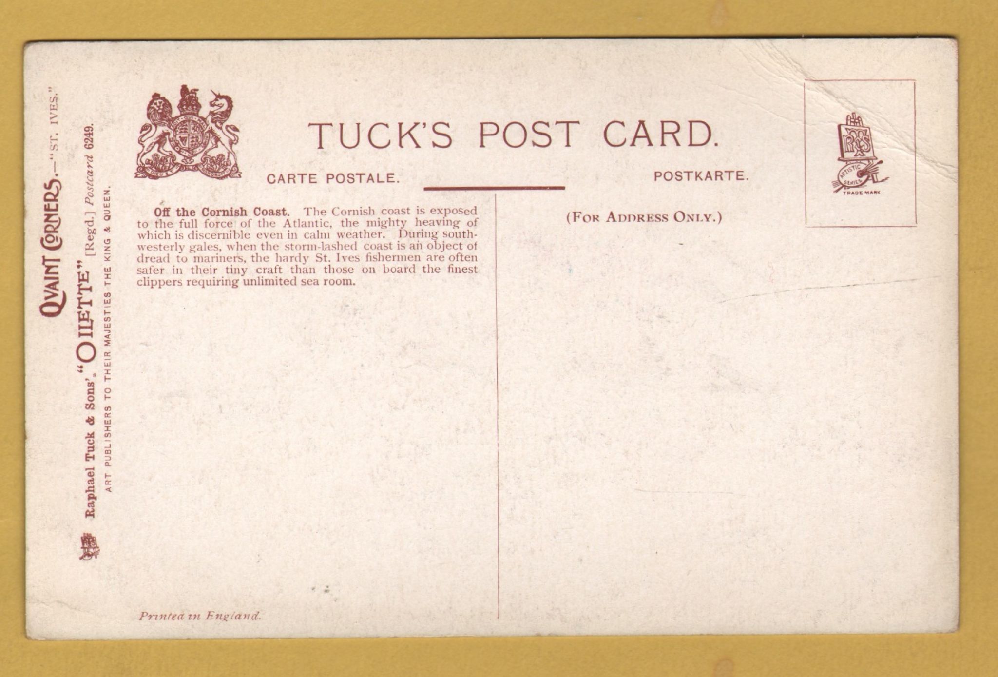 `Quaint Corners Series-St Ives - `Off The Cornish Coast, (A St Ives Boat In A Gale)` - Oilette - 6249` - Postally Unused - Raphael Tuck & Sons Postcard.