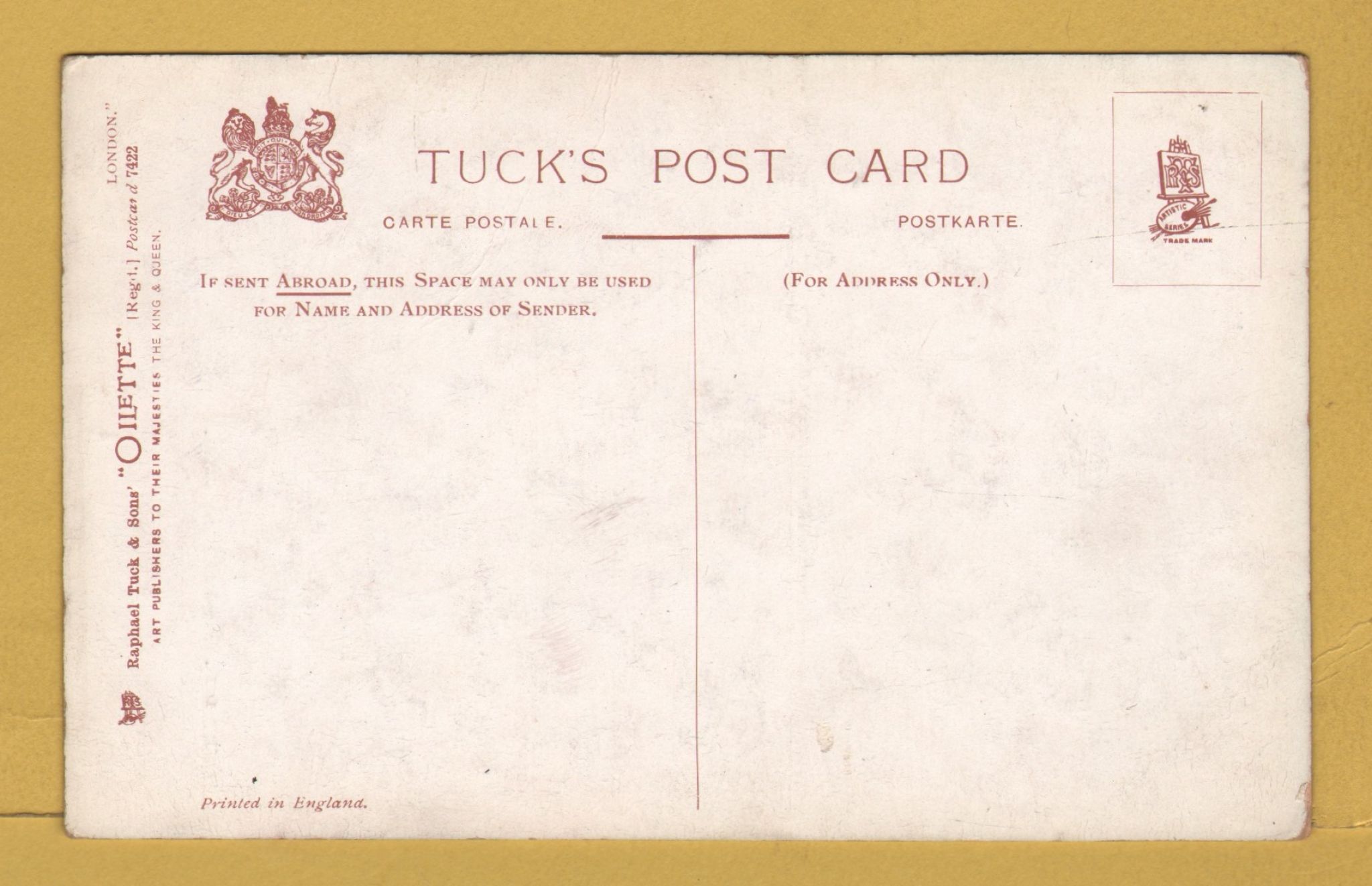further detail & condition of postcard.