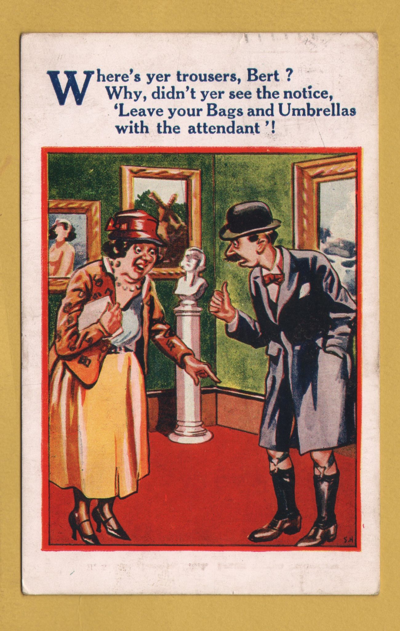 Tags: Where`s yer trousers, Bert?, No.4546:Used, 1936, H. B. Ltd Postcard.