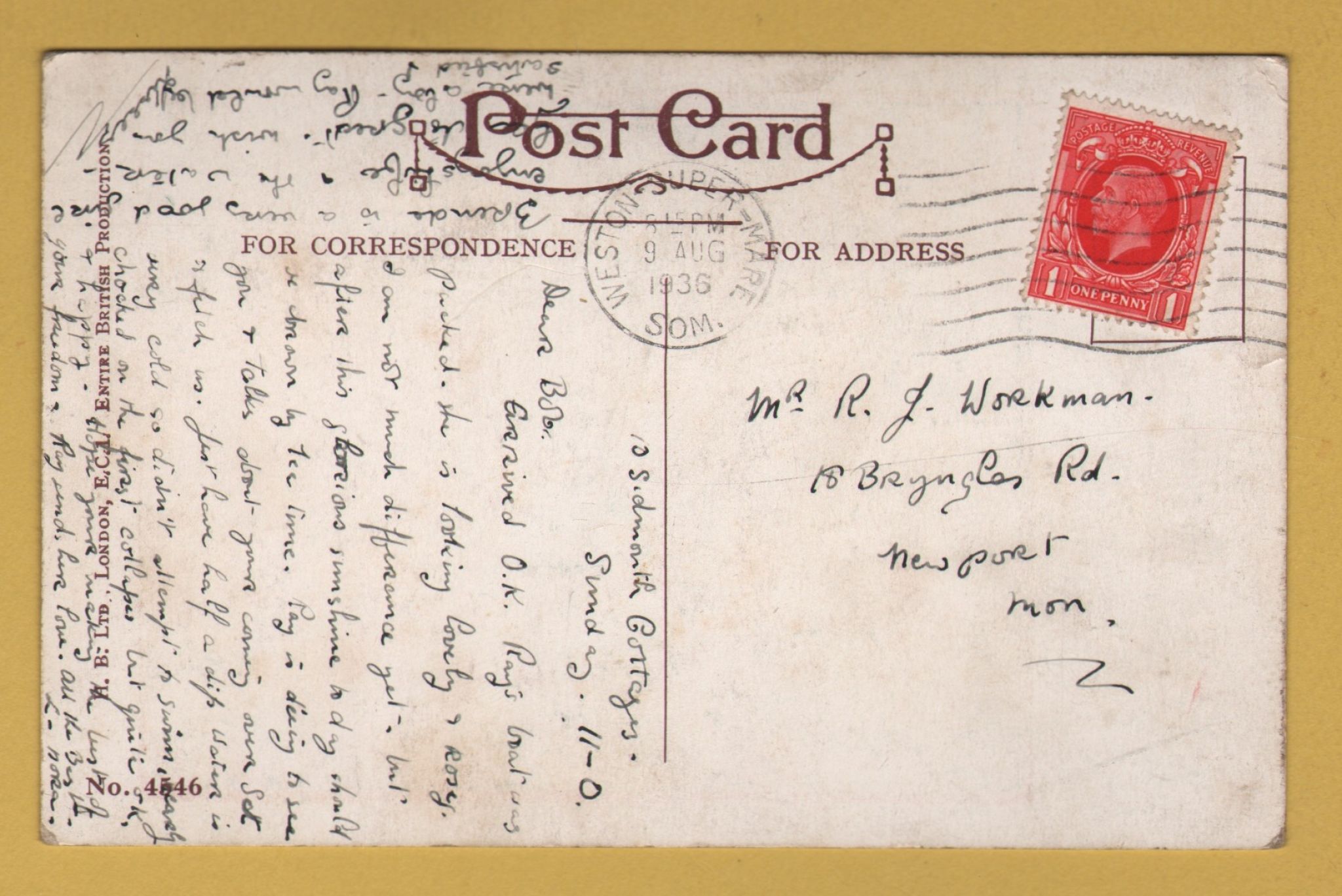 `Where`s yer trousers, Bert?....No.4546` - Postally Used-1936 - H. B. Ltd Postcard.