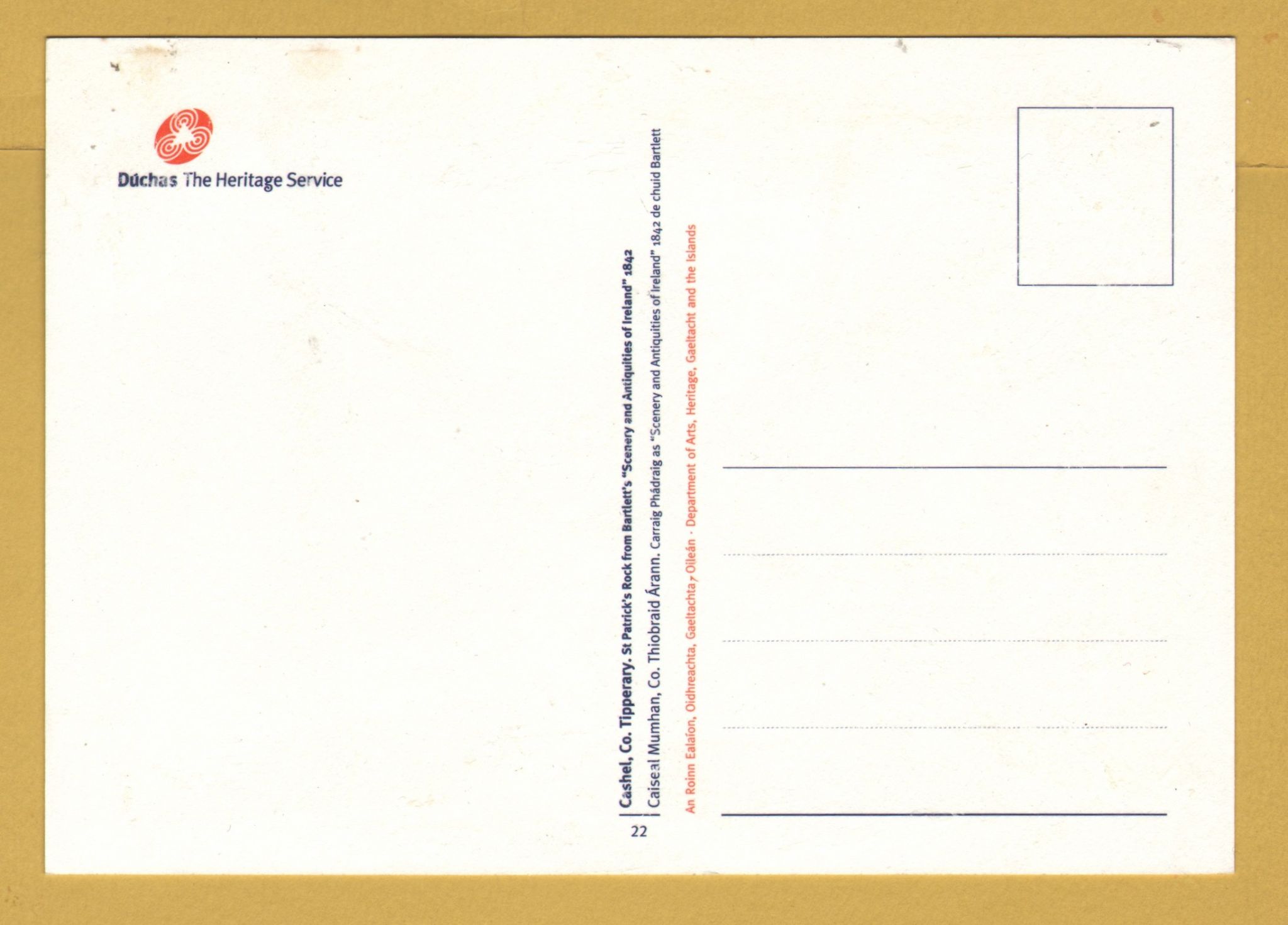Tags: Cashel, Co Tipperary, St Patrick`s Rock, Bartlett`s, William Henry Bartlett:Unused, Duchas Postcard.