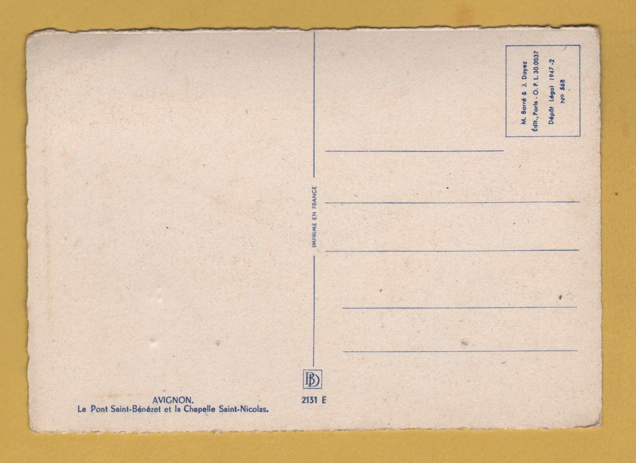 Tags: Avignon, Le Pont Saint-Benezet, la Chapelle Saint Nicolas, Barday:Unused, M.Barre, J.Doyez Postcard.