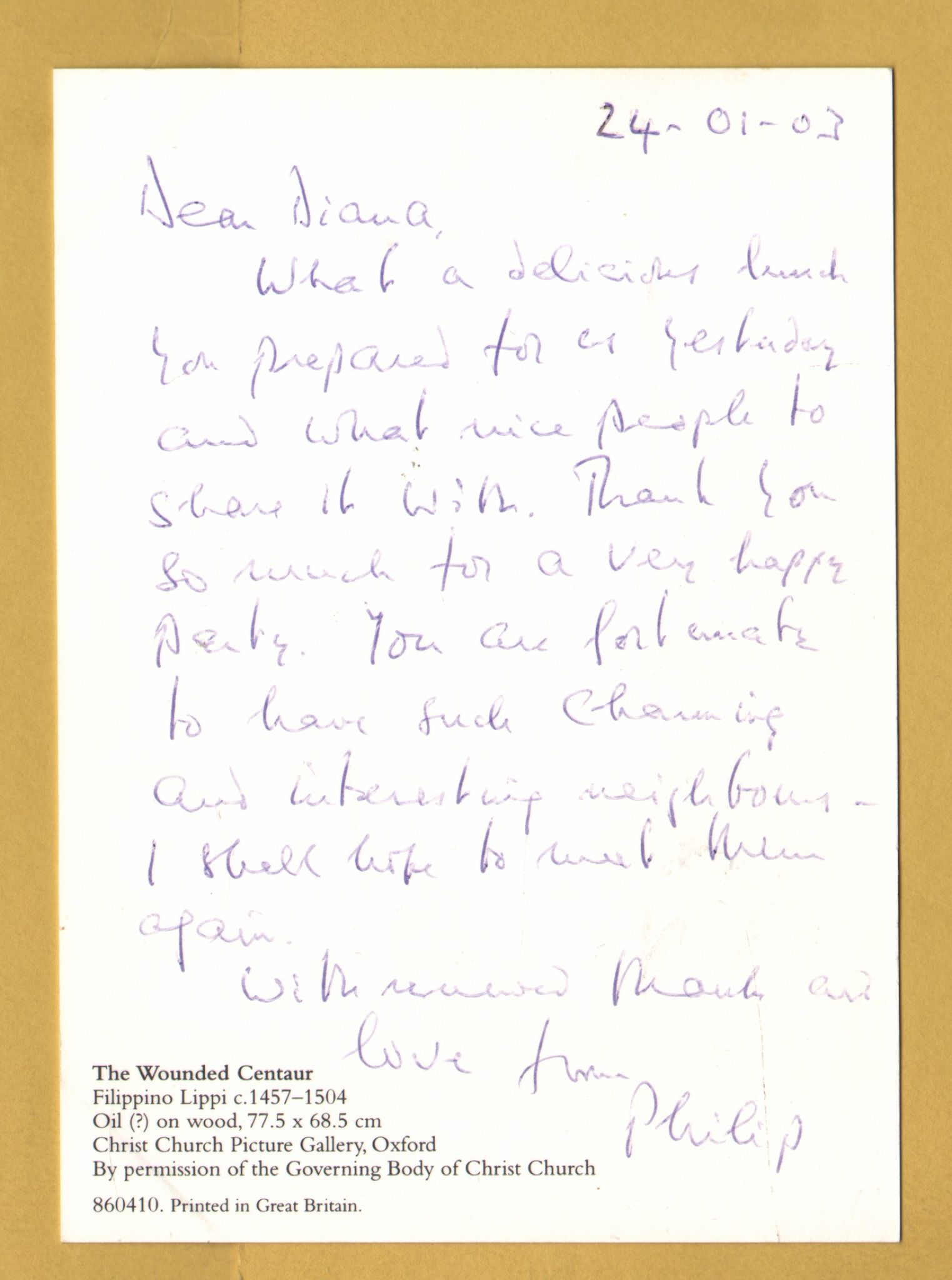Tags: The Wounded Centaur, Filippino Lippi:Unused, Christ Church Picture Gallery Postcard.