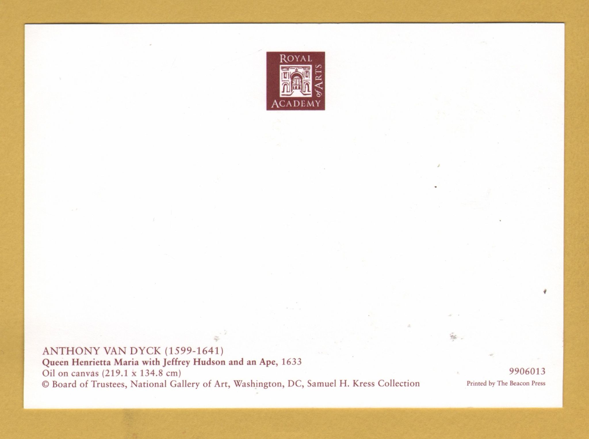 Tags: Queen Henrietta Maria, Jeffery Hudson, Ape, 1633, Anthony Van Dyck:Unused, Royal Academy of Arts Postcard.