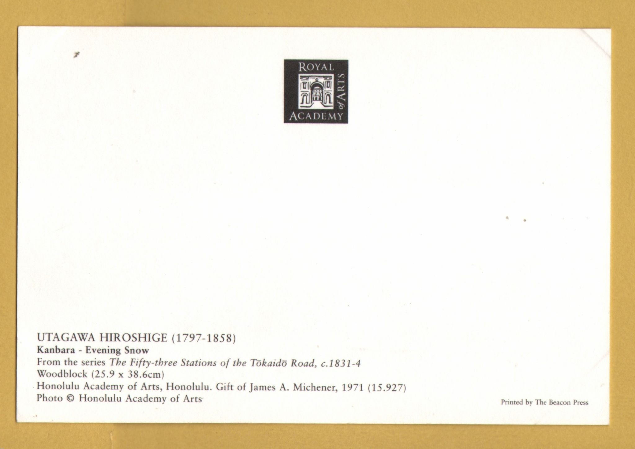 Tags: Kanbara, Evening Snow, Utagawa Hiroshige:Unused, Royal Academy of Arts Postcard.