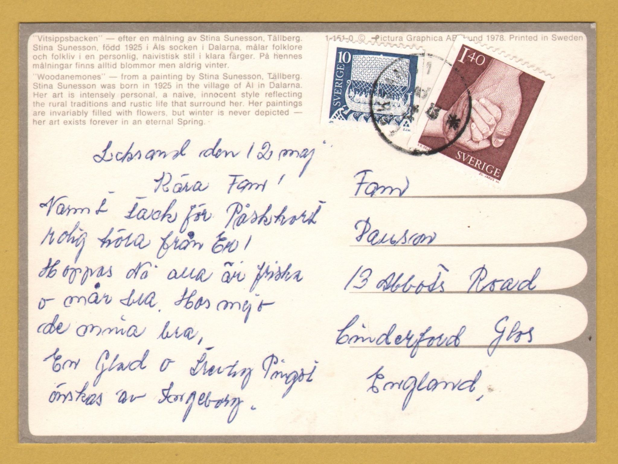 Tags: Woodanemones, Stina Sunesson, 1978:Used, 1980, Pictura Graphica Postcard.