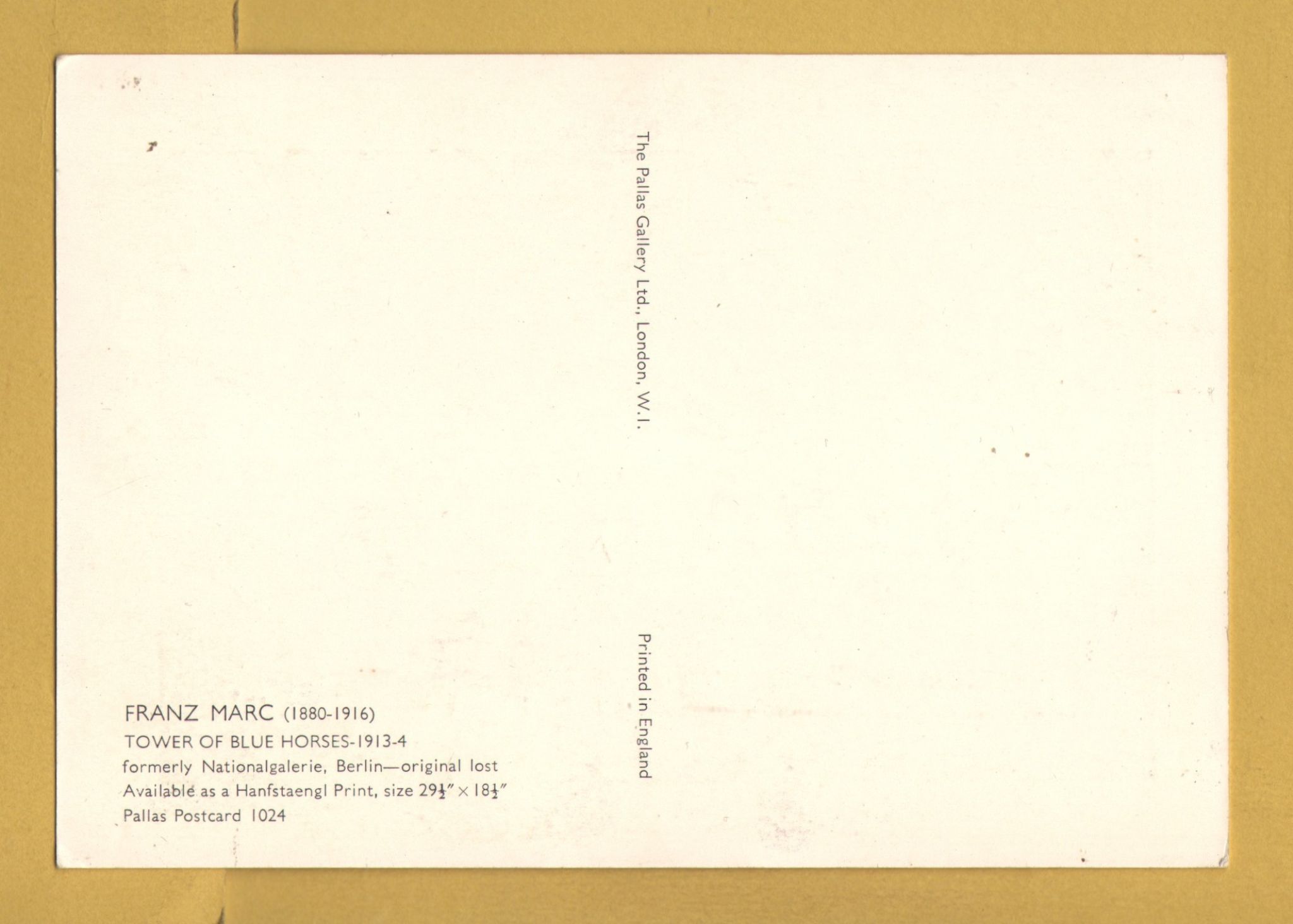 Tags: Tower of Blue Horses, Franz Marc, 1913-14:Unused, Pallas Postcard.