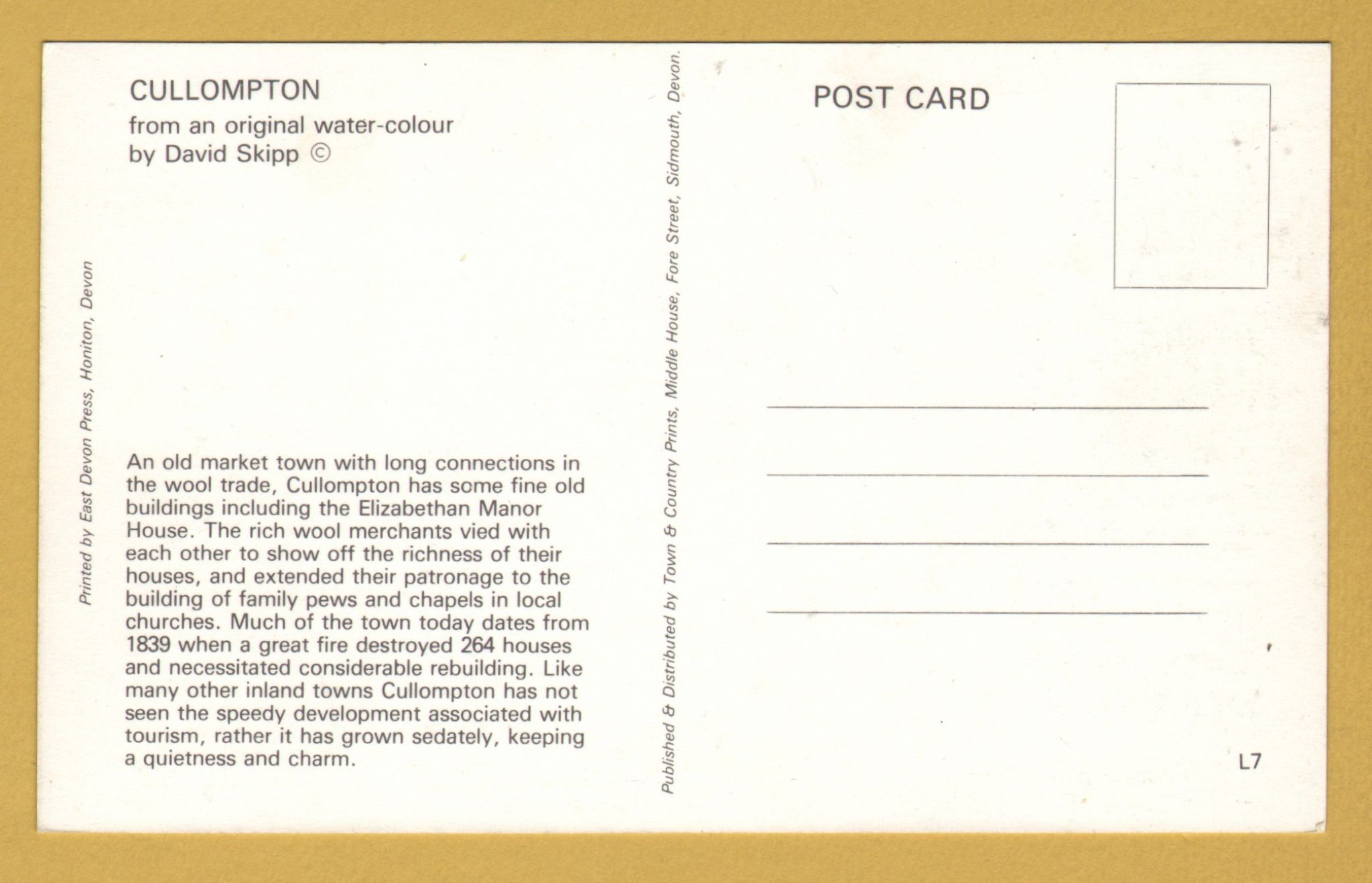 Tags: CULLOMPTON, Devon, David Skipp:Unused, Town & Country Prints Postcard.