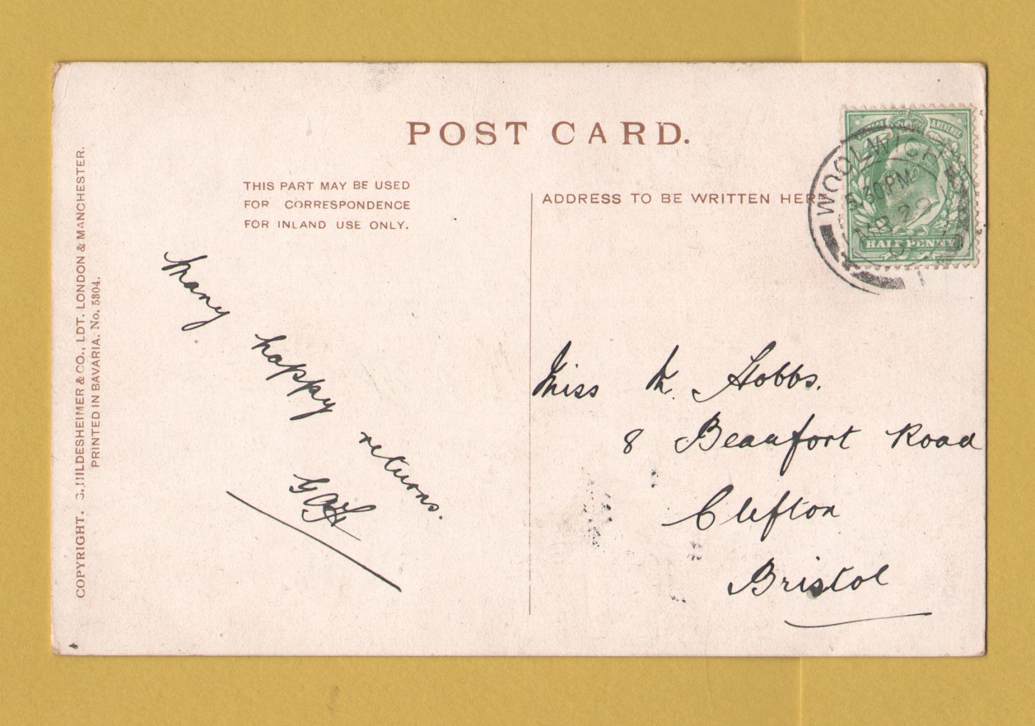 `Tintern Abbey, B.W Leader A.R.A` - Postally Used - Woolwich 29th March 1905 Postmark - S.Hildesheimer & Co, Postcard. `Tintern Abbey, B.W Leader A.R.A` - Postally Used - Woolwich 29th March 1905 Postmark - S.Hildesheimer & Co, Postcard.