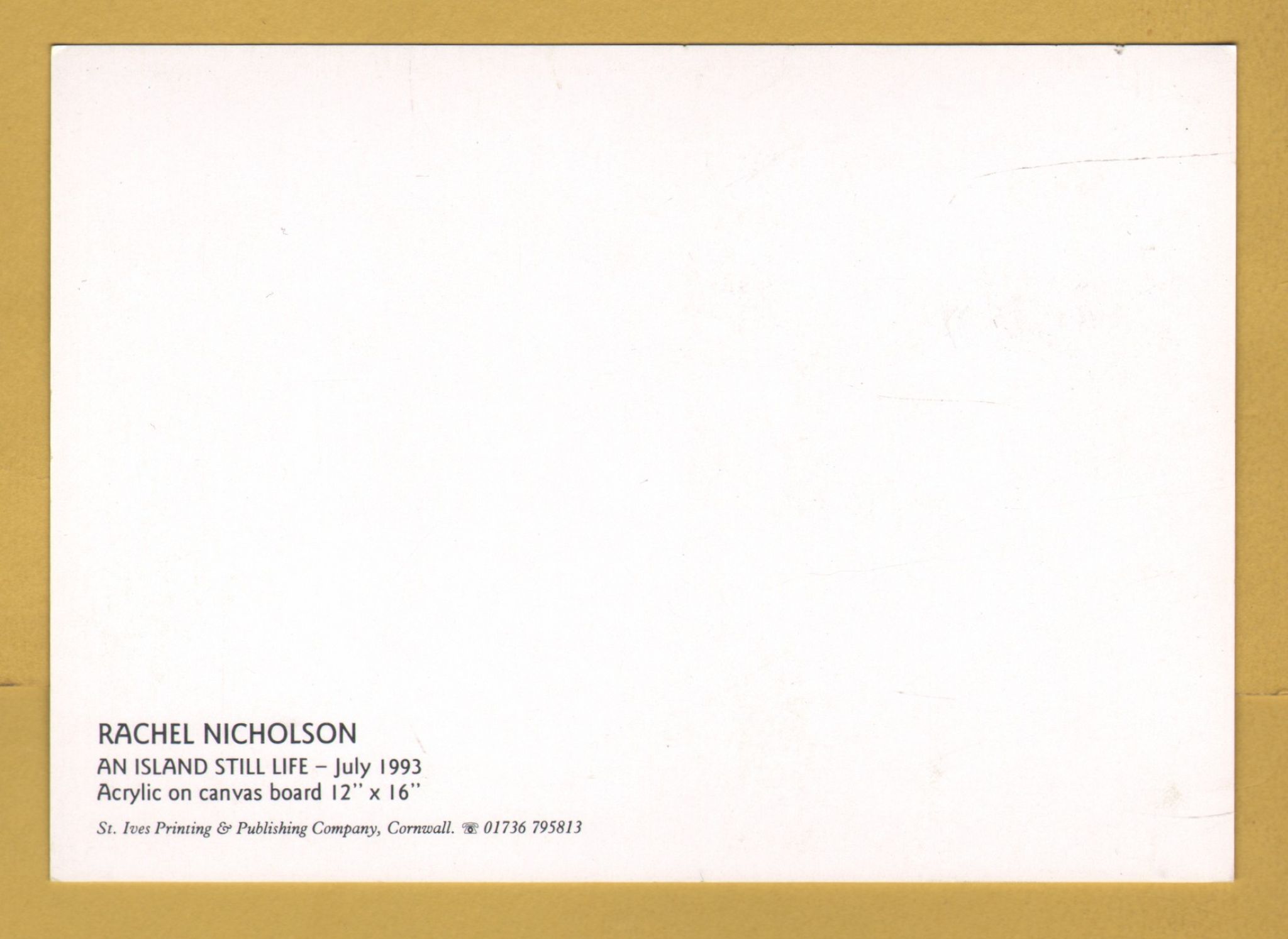 Tags: An Island Still Life, July 1993, Rachel Nicholson:Unused, St Ives Printing & Publishing Co. Postcard.