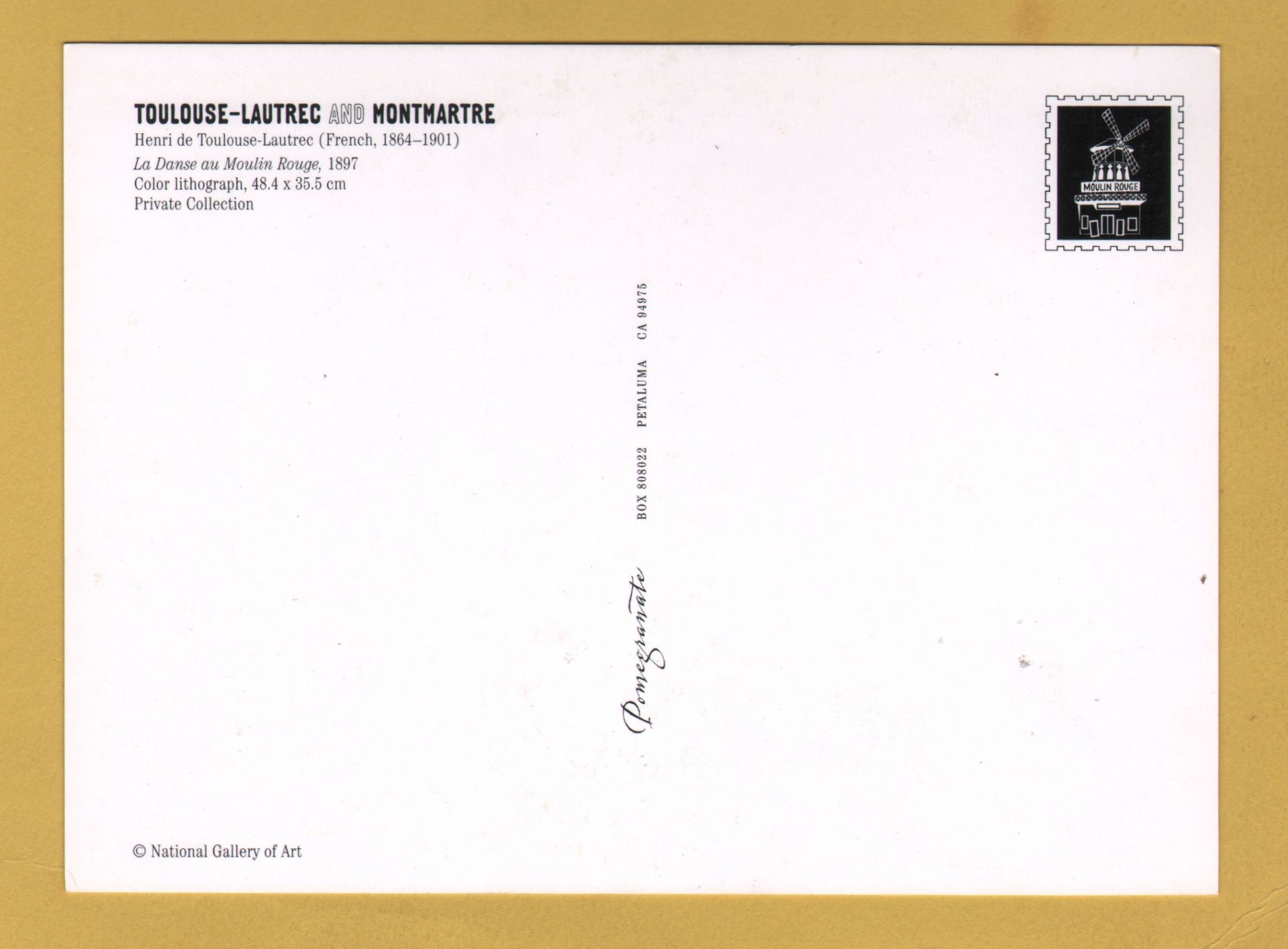 `Toulouse-Lautrec and Monmartre -`La Danse au Moulin Rouge, 1897 by Toulouse-Lautrec` - Postally Unused - Pomegranate Postcard. `Toulouse-Lautrec and Monmartre -`La Danse au Moulin Rouge, 1897 by Toulouse-Lautrec` - Postally Unused - Pomegranate Postcard.