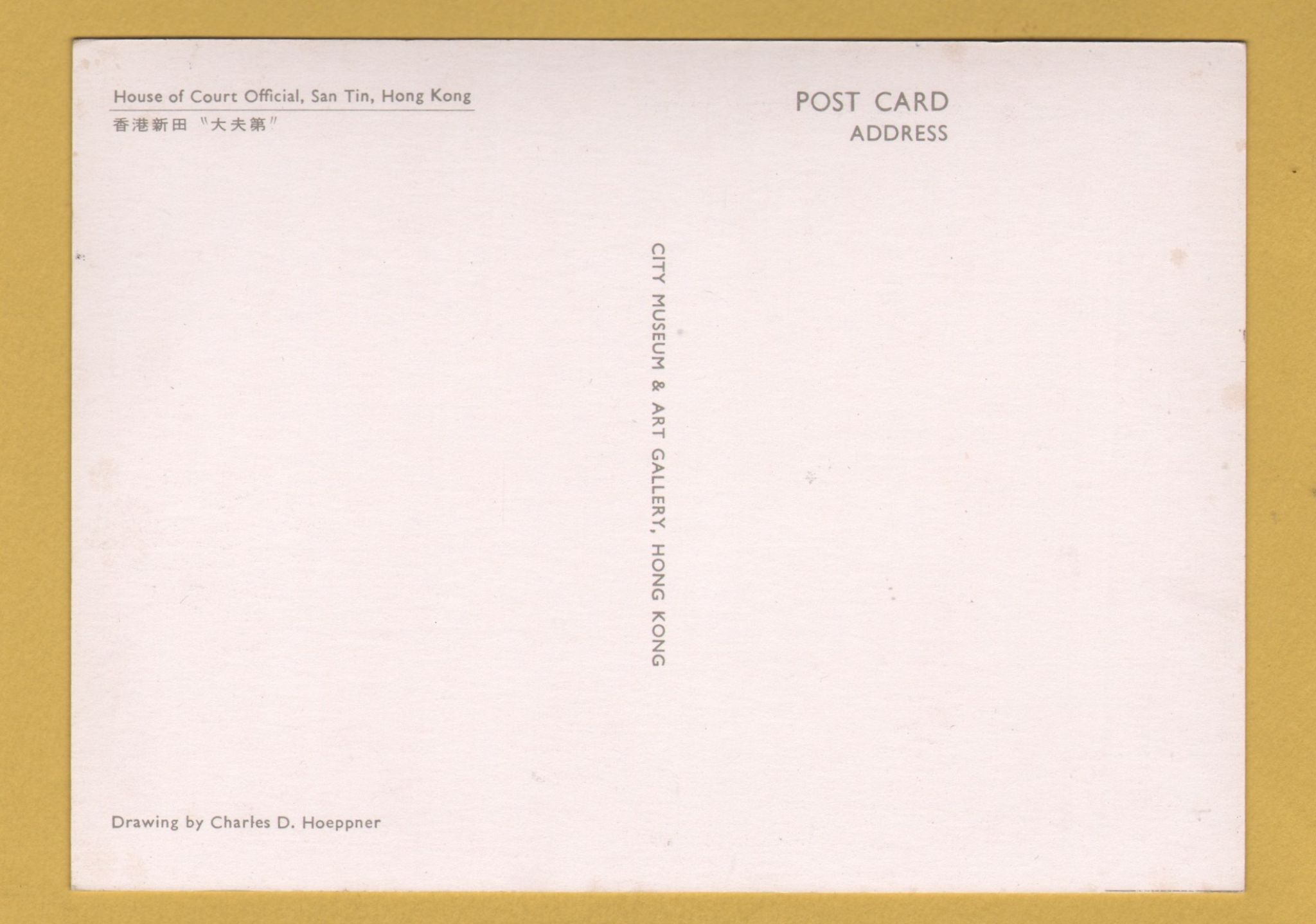 Tags: House of Court Official, San Tin, Hong Kong, Charles D.Hoeppner:Unused, City Museum, Art Gallery Postcard.
