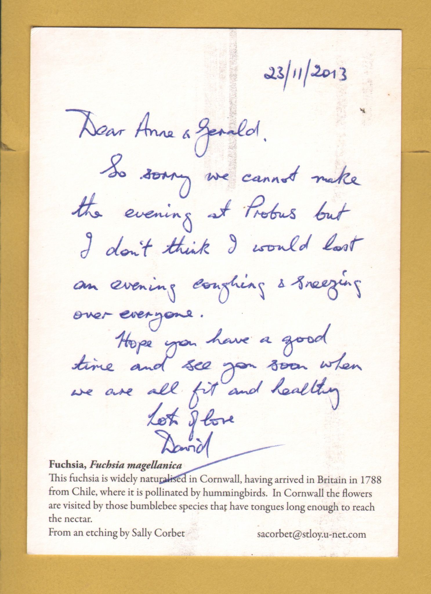 Tags: Fuchia, Fuchia magellanica, Sally Corbet:Unused, Sally Corbet Postcard.