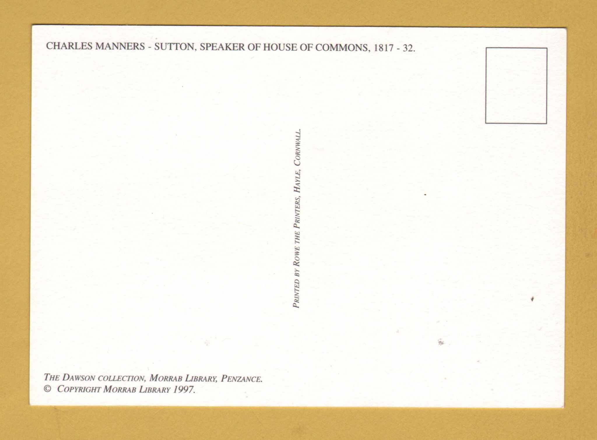 ``Elegant Manners` - Charles Manners-Sutton, Speaker of the House of Commons, 1817/32 by Richard Dighton` - Postally Unused - Morab Library Postcard. ``Elegant Manners` - Charles Manners-Sutton, Speaker of the House of Commons, 1817/32 by Richard Dighton` - Postally Unused - Morab Library Postcard.