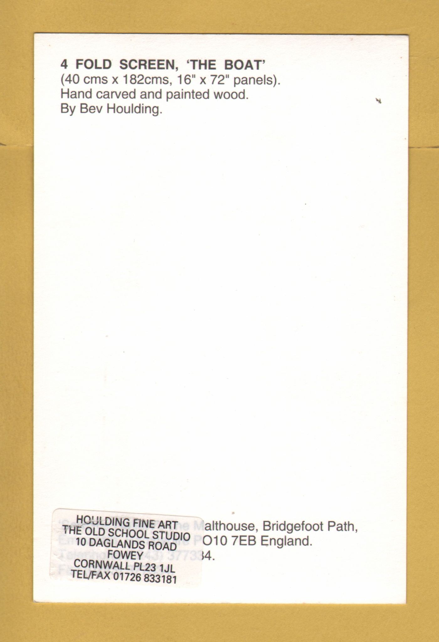 Tags: 4 Fold Screen, The Boat, Bev Houlding:Unused, Malthouse Postcard.