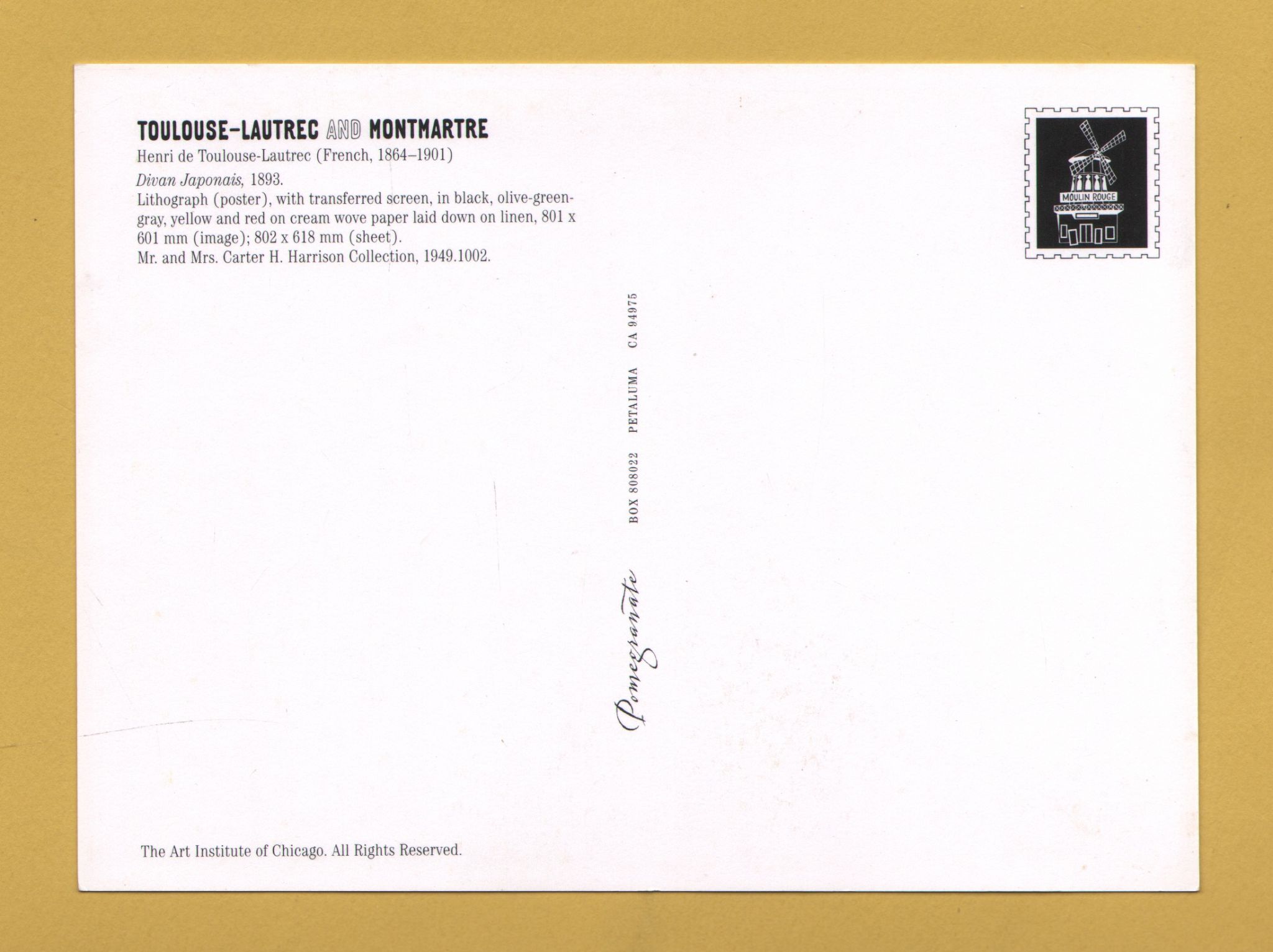 `Toulouse-Lautrec and Monmartre -`Divan Japonais, 1893 by Toulouse-Lautrec` - Postally Unused - Pomegranate Postcard. `Toulouse-Lautrec and Monmartre -`Divan Japonais, 1893 by Toulouse-Lautrec` - Postally Unused - Pomegranate Postcard.