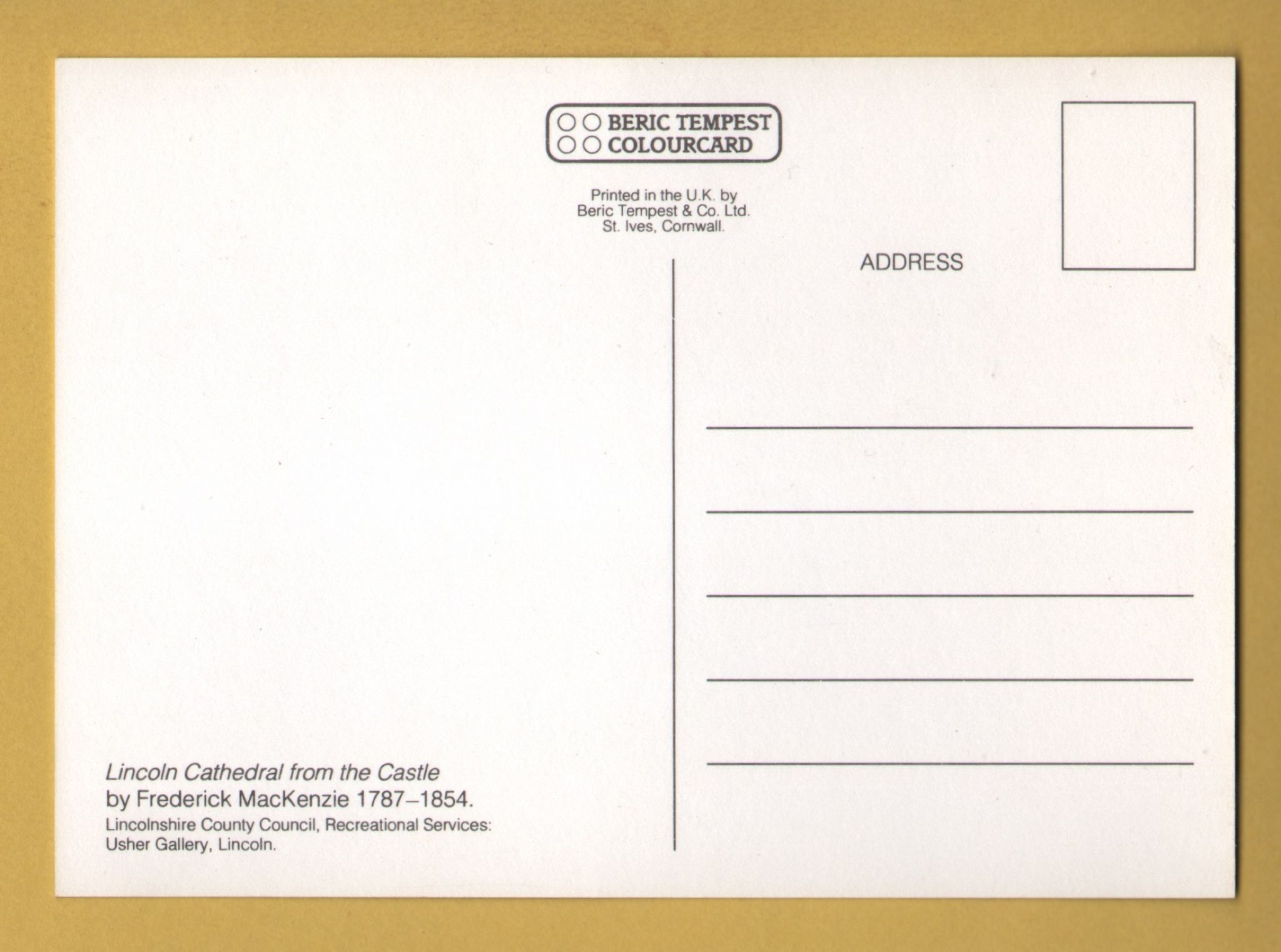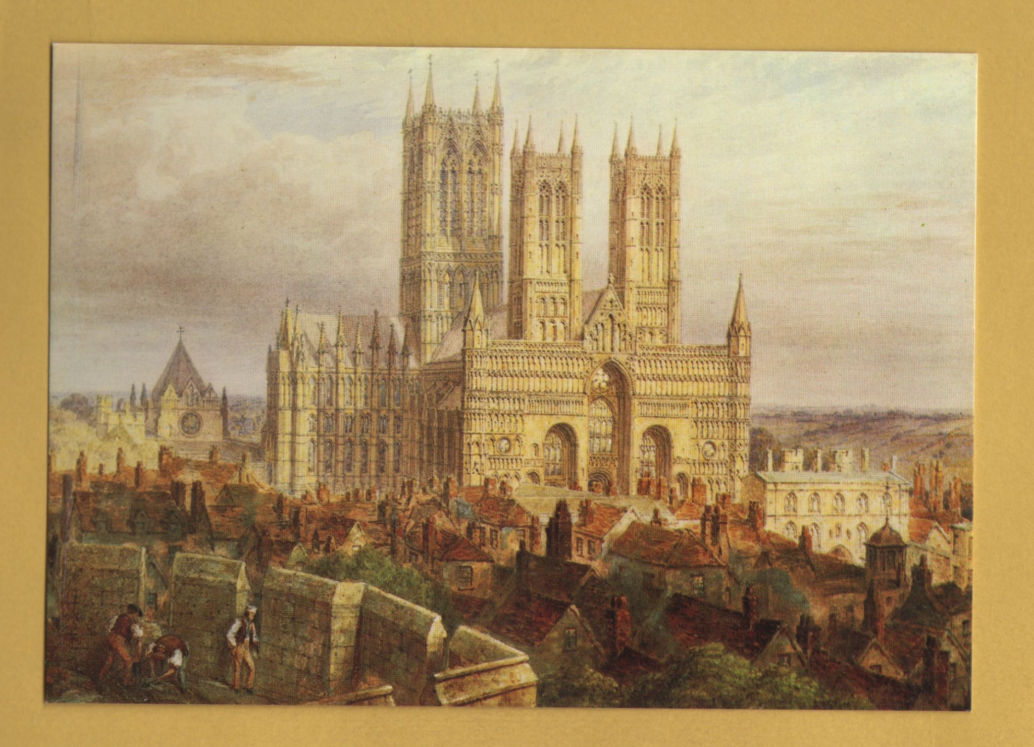 `Lincoln Cathedral from the Castle by Frederick MacKenzie` - Postally Unused - Usher Gallery, Lincoln Postcard