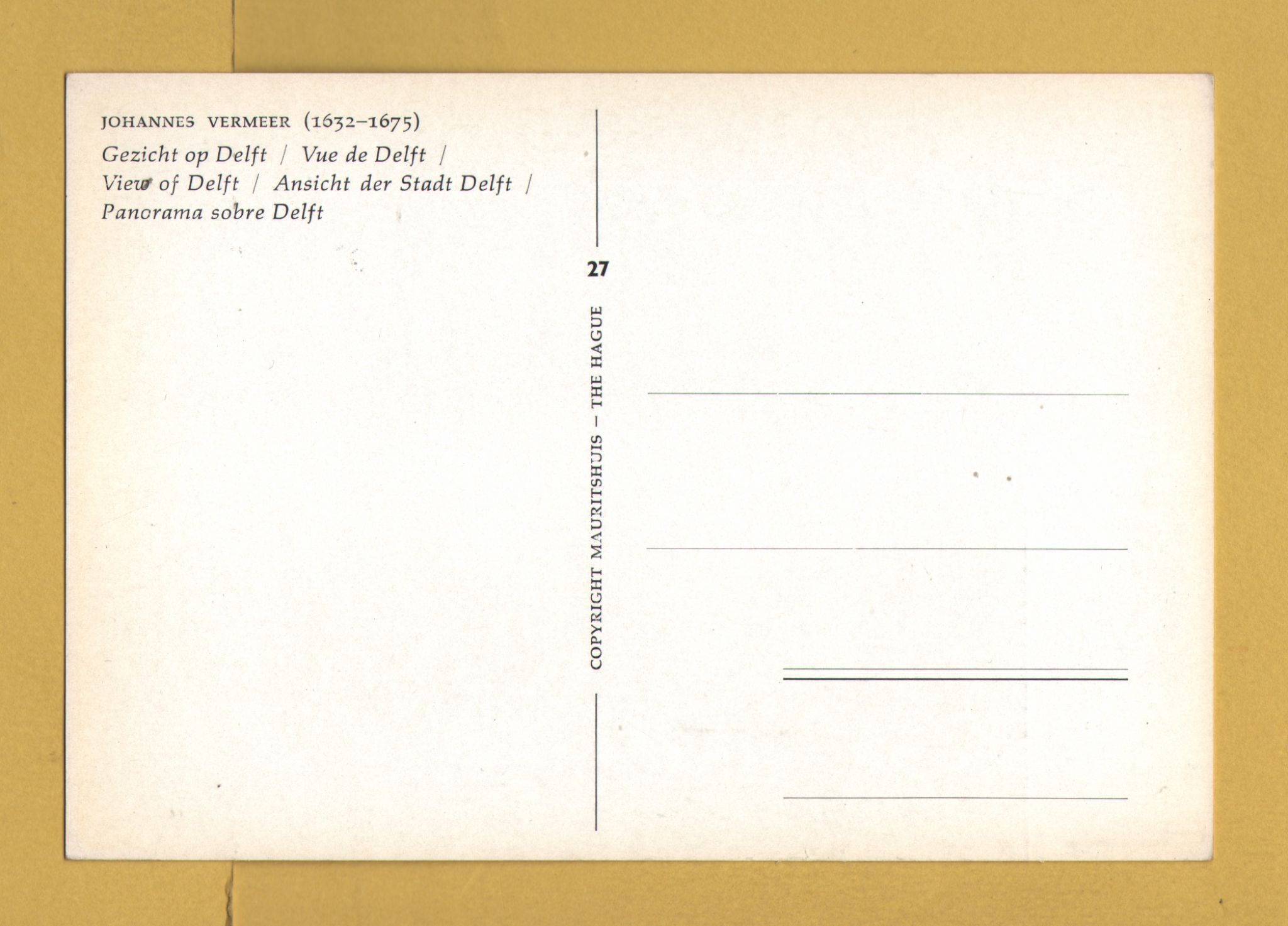 Tags: View of the City of Delft, Johannes Vermeer:Unused, Mauritshuis Postcard.