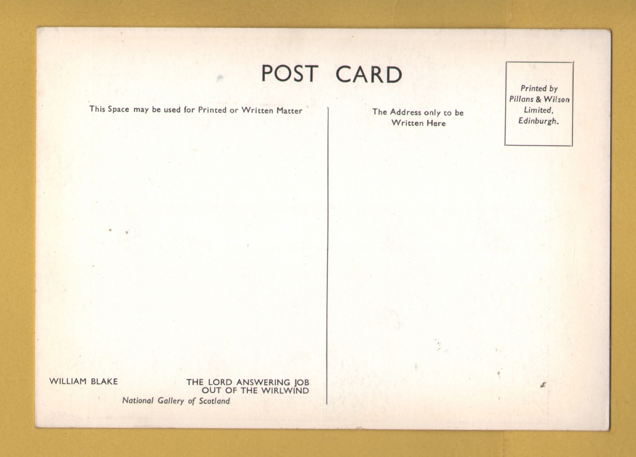 `The Lord Answering Job Out Of The Wirlwind by William Blake` - Postally Unused - National Gallery Scotland Postcard. `The Lord Answering Job Out Of The Wirlwind by William Blake` - Postally Unused - National Gallery Scotland Postcard.