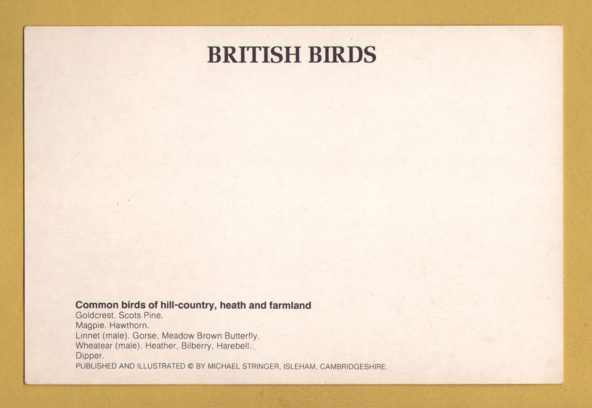 Tags: British Birds, Common Birds of Hill-Country, Heath and Farmland, Michael Stringer:Unused, Michael Stringer Postcard.