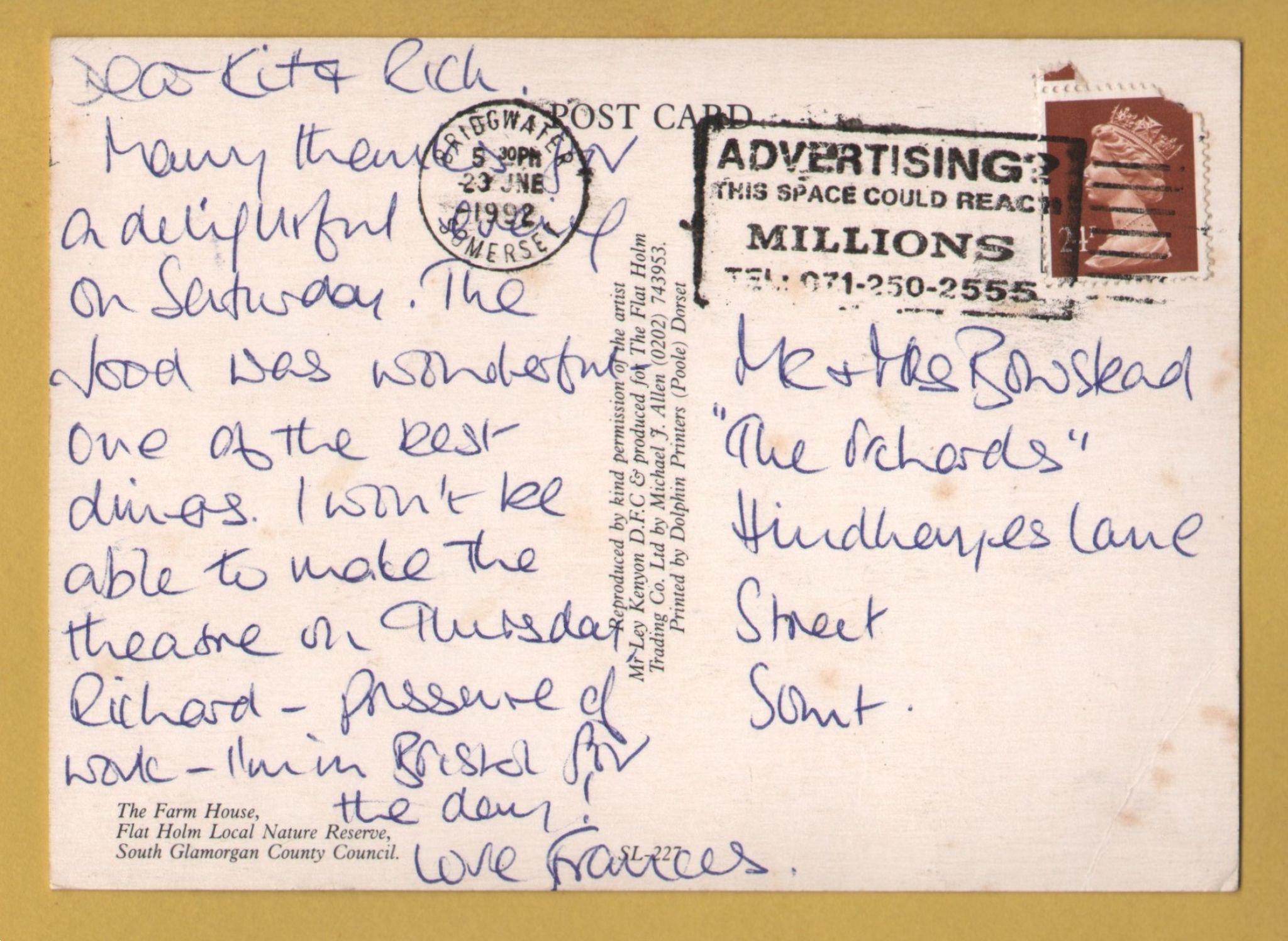 Tags: The Farm House, Ley Kenyon:Used, 1992, Flat Holm Postcard.
