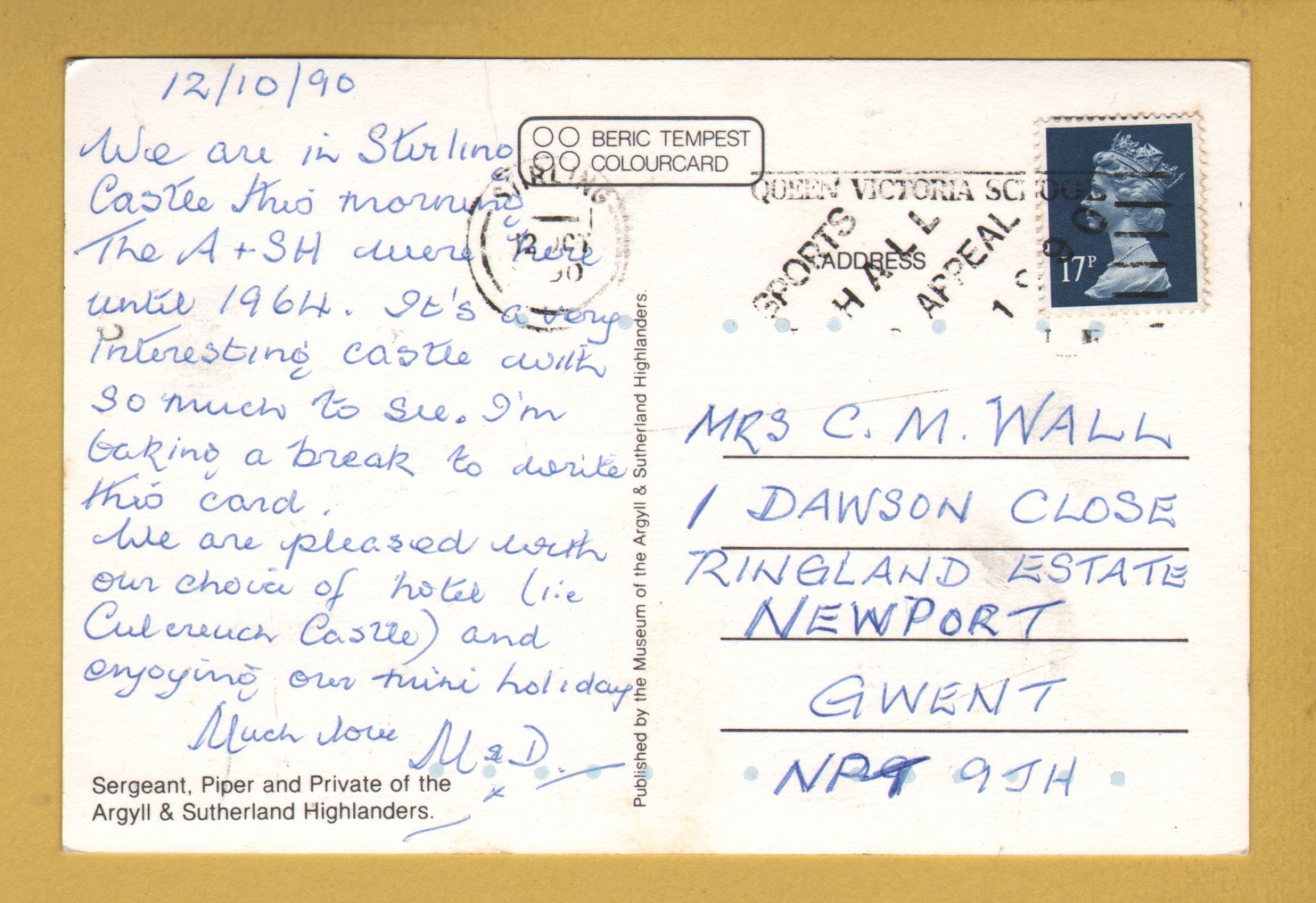 Tags: Sergeant, Piper, Private, Argyll & Sutherland Highlanders:Used, 1990, Museum Postcard.