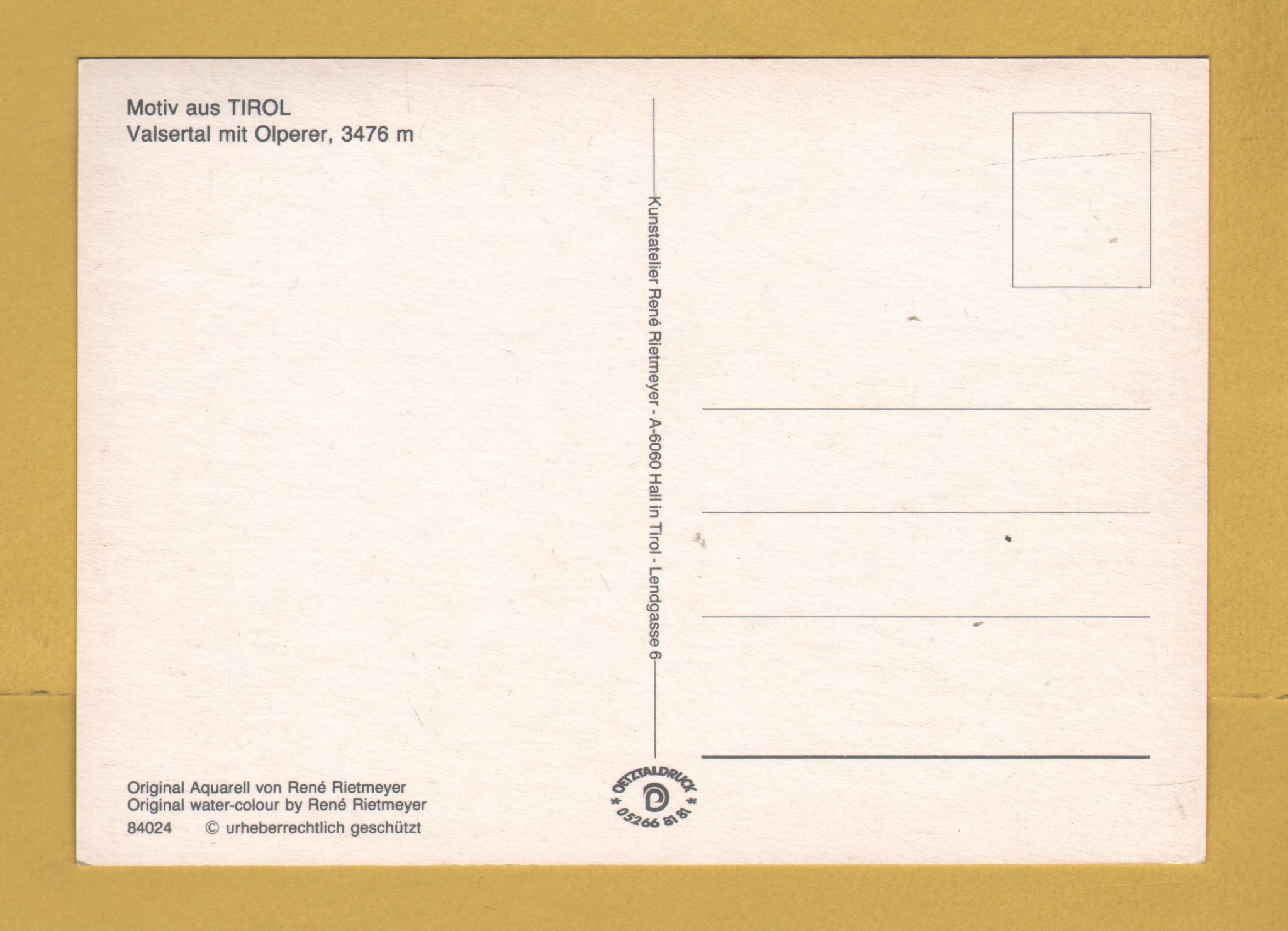 Tags: Austria, Valsertal with Olperer, Rene Rietmeyer:Unused, Rene Rietmeyer Postcard.