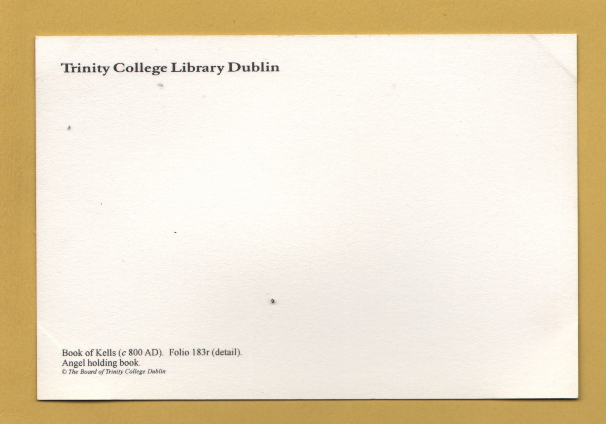 Tags: Book of Kells, c800 AD, Angel Holding Book:Unused, Trinity College Library Postcard.