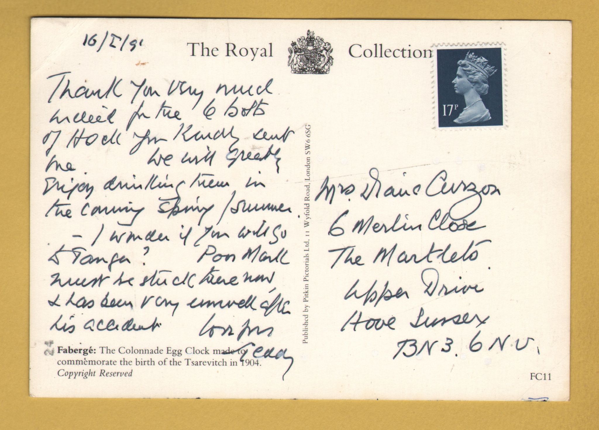 `Faberge: The Colonade Egg Clock` - Postally Used-1991 - Pitkin Pictorials Postcard.