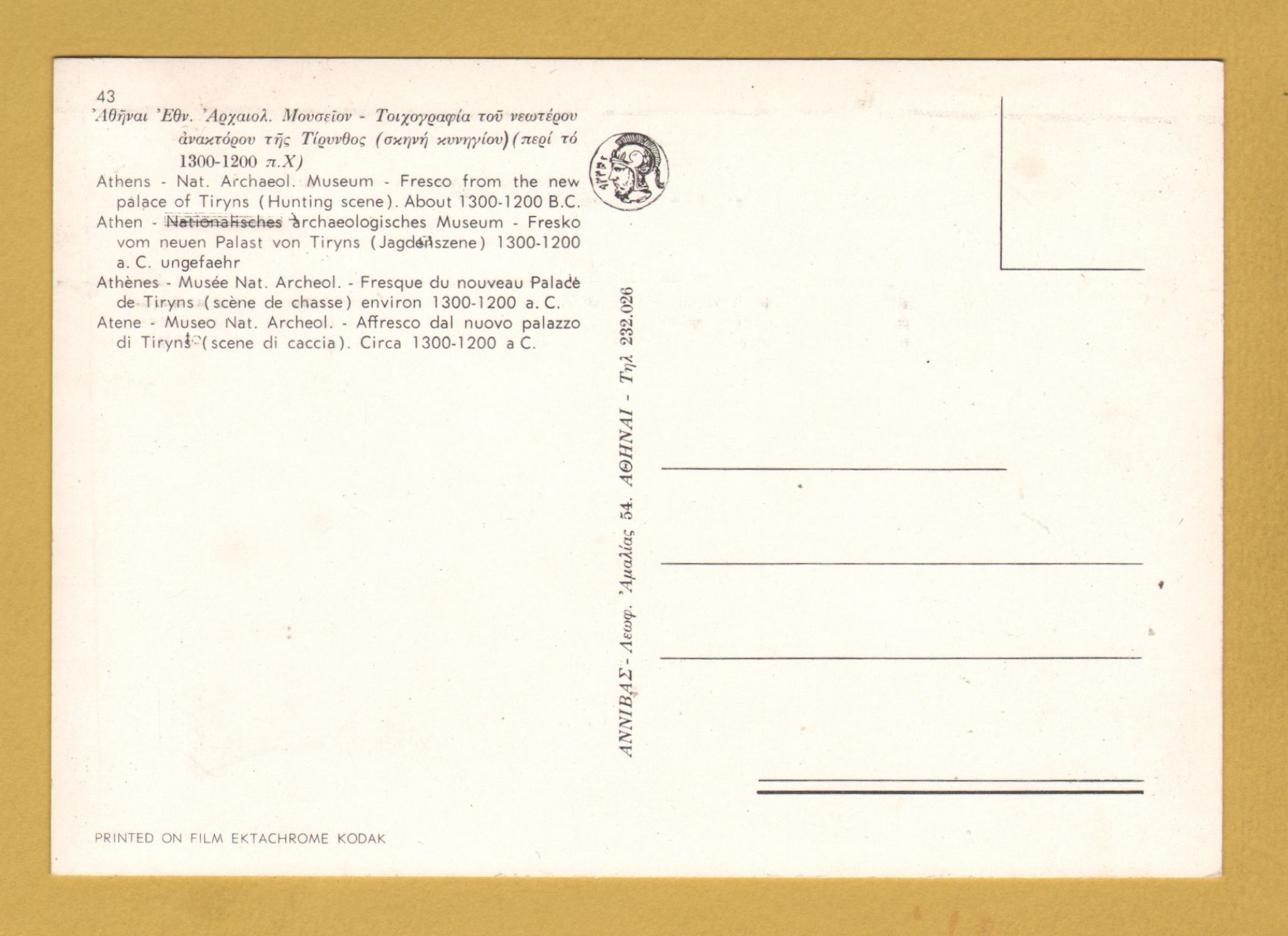 Tags: Fresco from the New Palace of Tiryns:Unused, Hannibal Postcard.