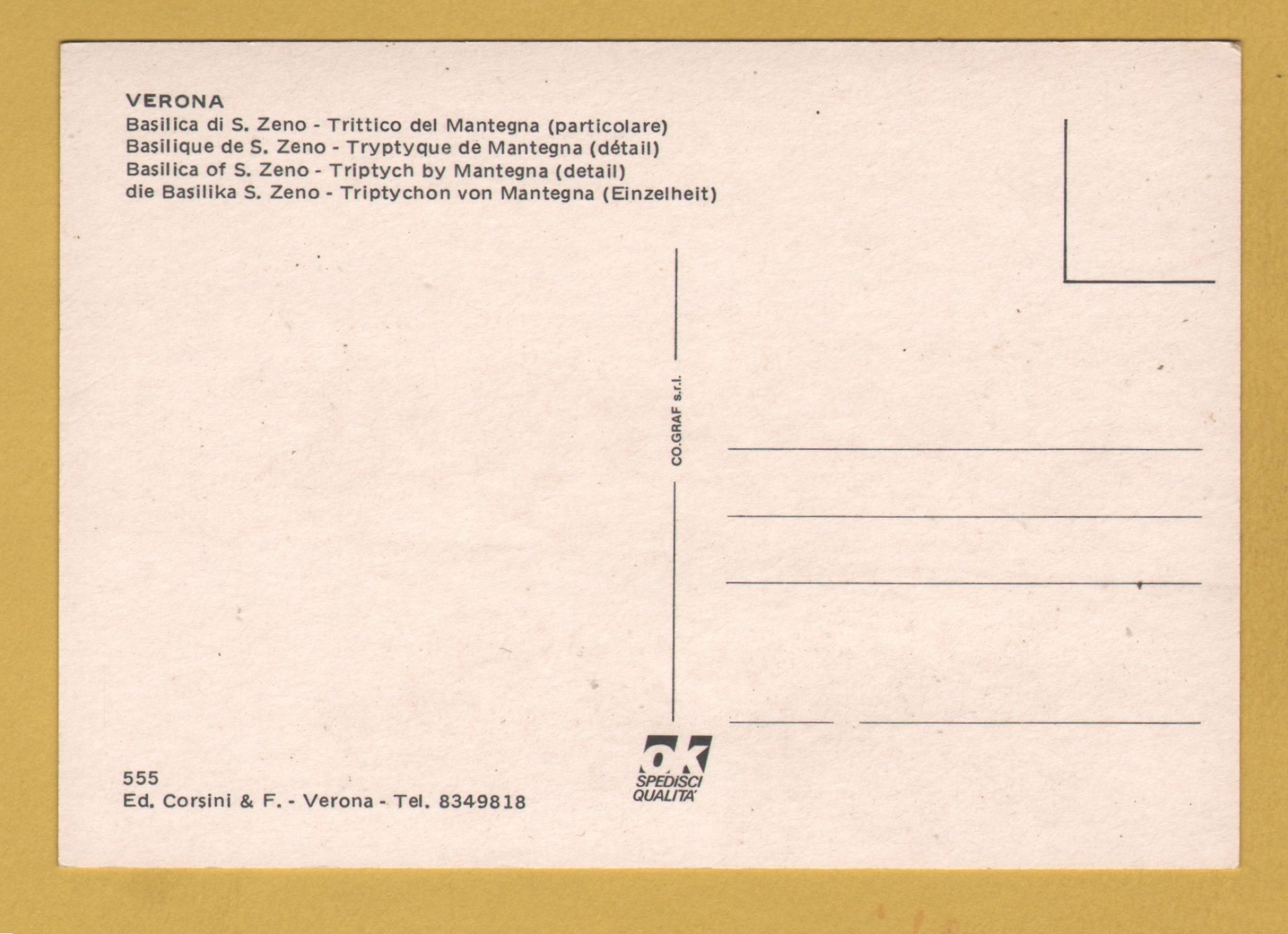 Tags: Verona, Basilica of S. Zeno, Tryptych, Mantegna:Unused, Corsini & F Postcard.