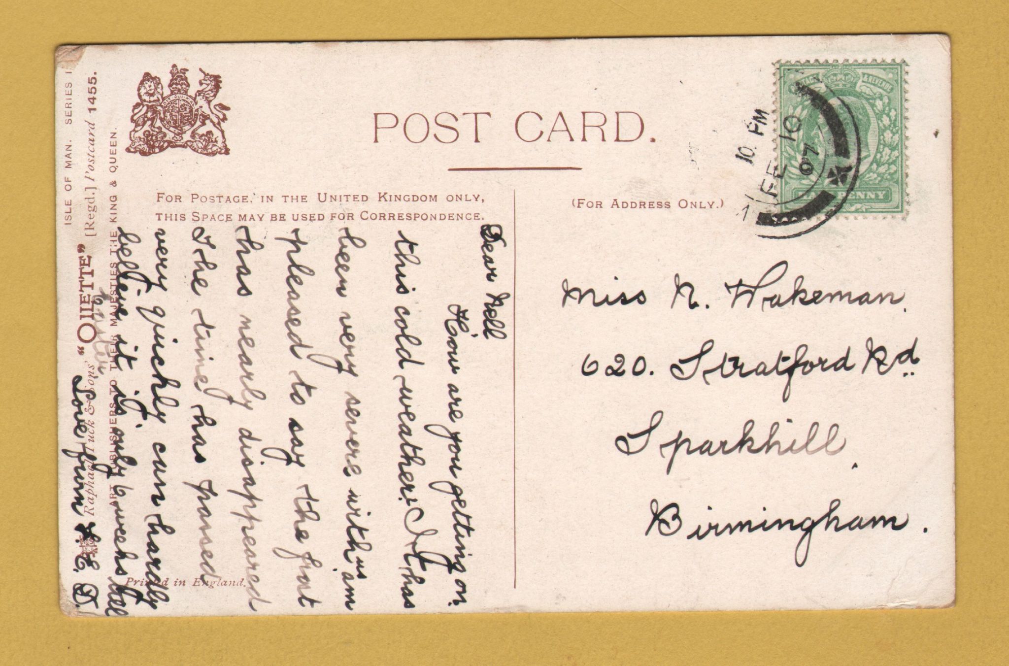 `Isle of Man Series l - `Glen Helen, I of Man` - Oilette - 1455` - Postally Used-1907 - Raphael Tuck & Sons Postcard. `Isle of Man Series l - `Glen Helen, I of Man` - Oilette - 1455` - Postally Used-1907 - Raphael Tuck & Sons Postcard.