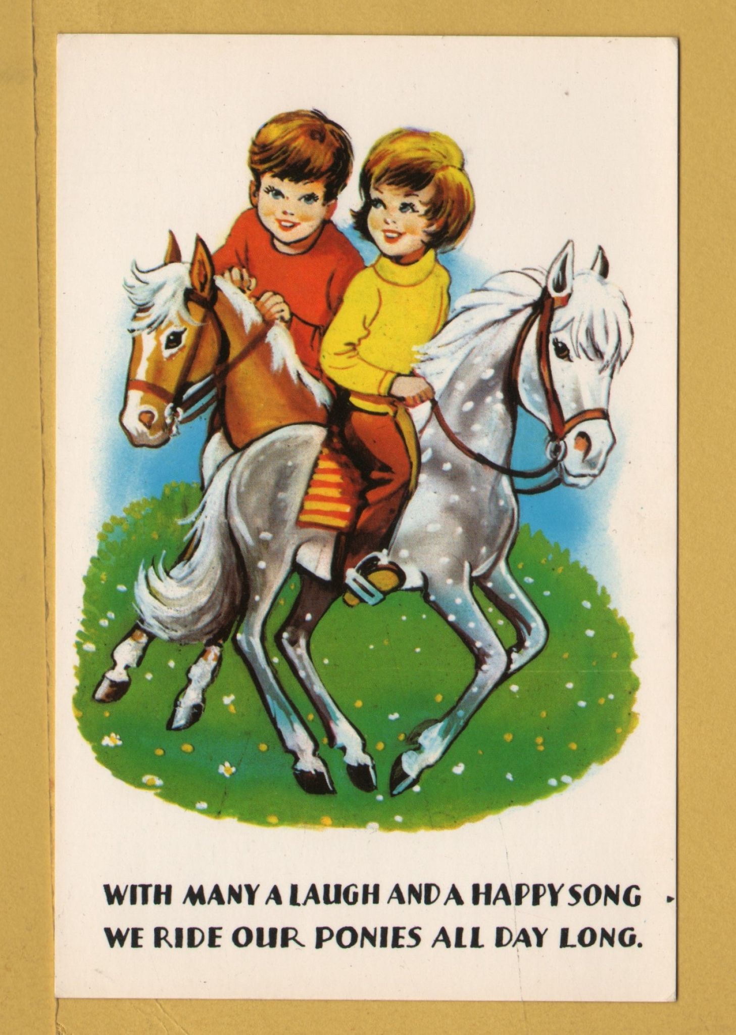 `With Many A Laugh And Happy Song, We Ride Our Ponies All Day Long` - Postally Unused - Producer Unknown Postcard `With Many A Laugh And Happy Song, We Ride Our Ponies All Day Long` - Postally Unused - Producer Unknown Postcard