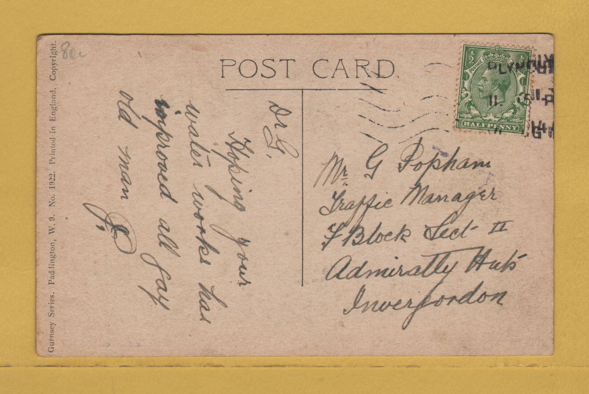 Gurnsey Series Postcard