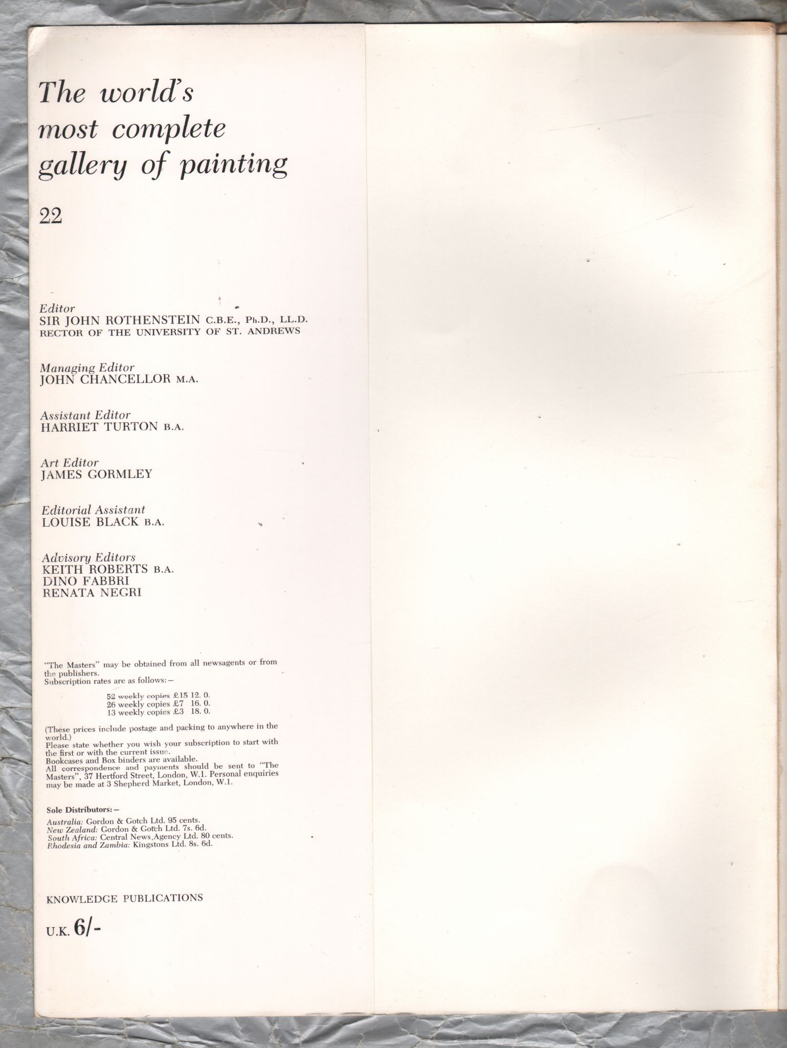 Tags: The Masters, `WRIGHT of DERBY`, No.22, 1966, 16 Colour Plates, Knowledge Publications