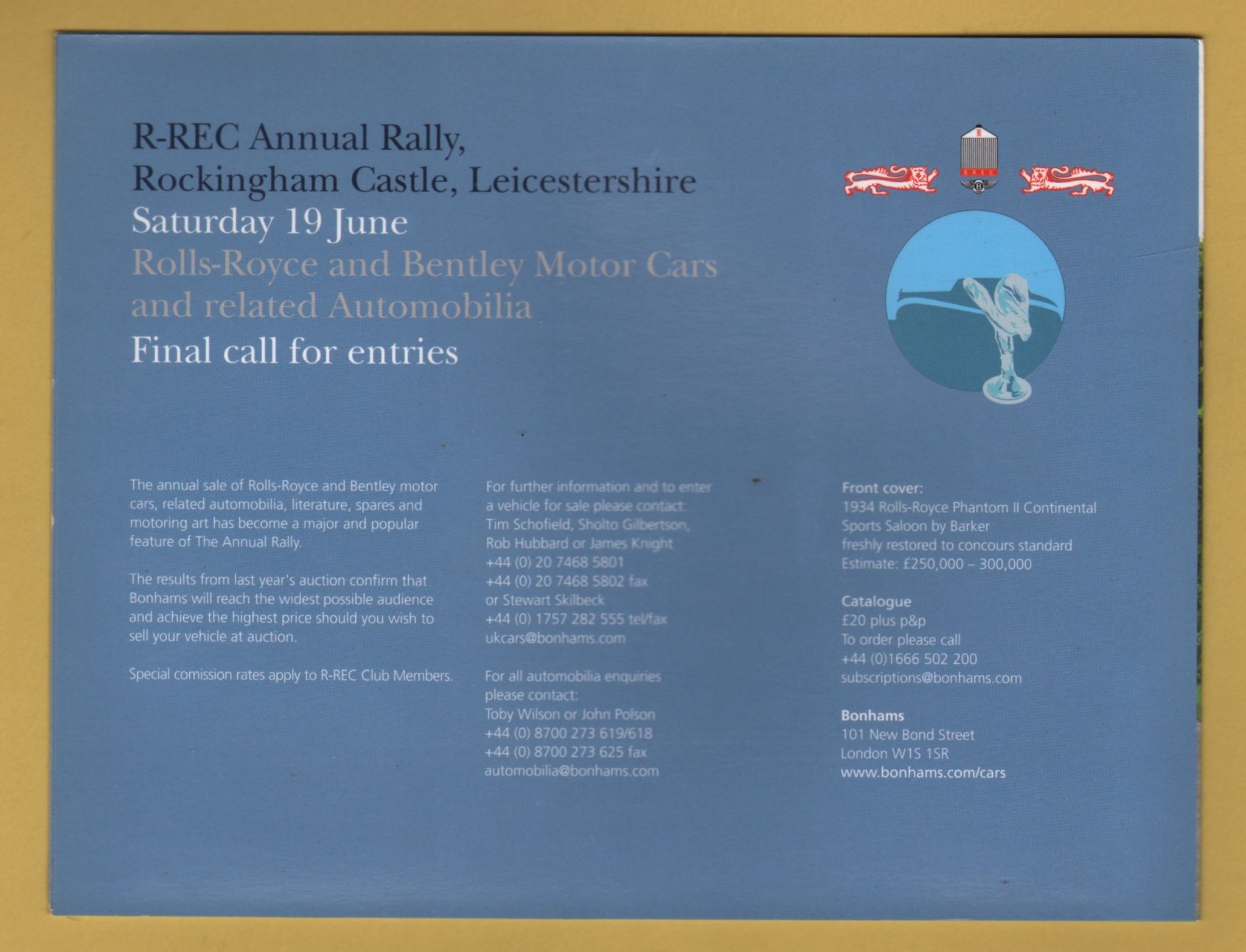 Bonhams - Rolls-Royce and Bentley Motor Cars and Related Automobilia -`Final Call For Entries` - Rockingham Castle - Monday 19 April 2010