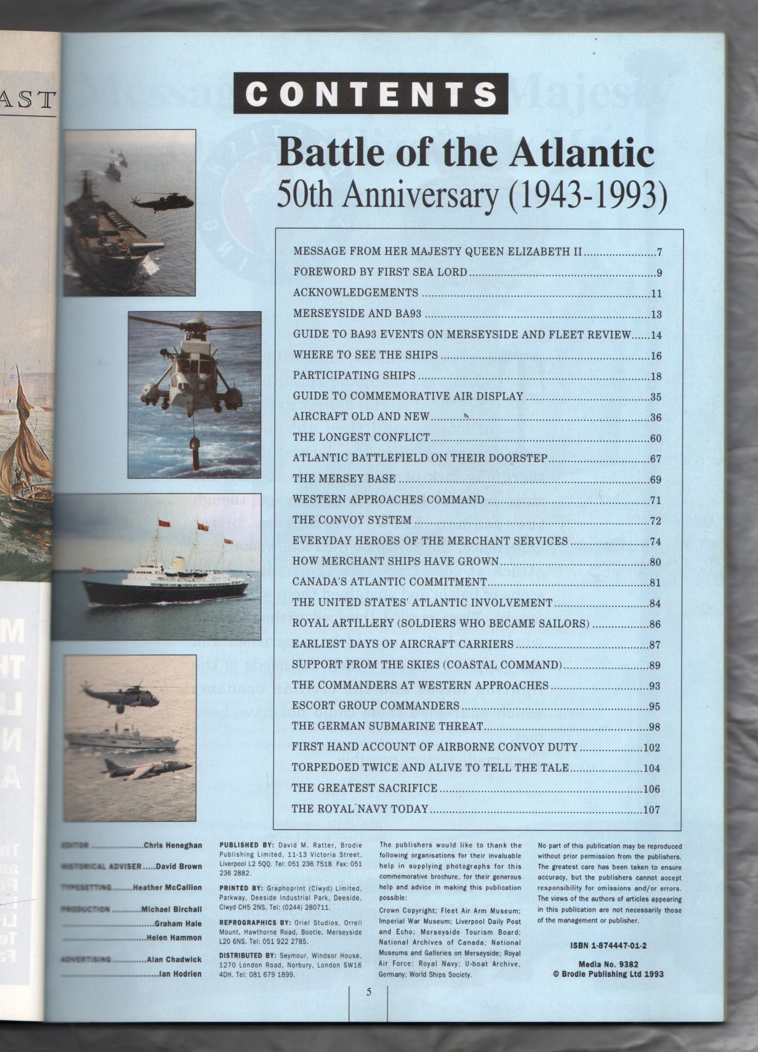 `50th Anniversary - Battle of the ATLANTIC` - Official Souvenir Brochure and Programme of Events - 1993 - Brodie Publishing Ltd `50th Anniversary - Battle of the ATLANTIC` - Official Souvenir Brochure and Programme of Events - 1993 - Brodie Publishing Ltd `50th Anniversary - Battle of the ATLANTIC` - Official Souvenir Brochure and Programme of Events - 1993 - Brodie Publishing Ltd