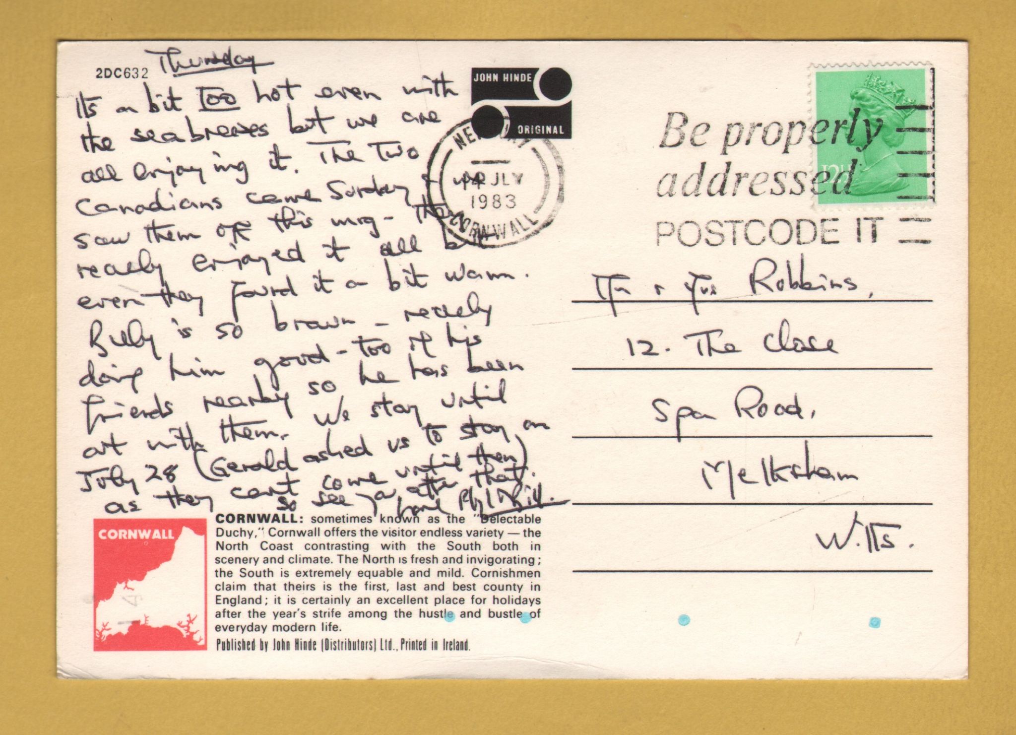 Tags: Greetings From Cornwall:Used, 1983, John Hinde Postcard