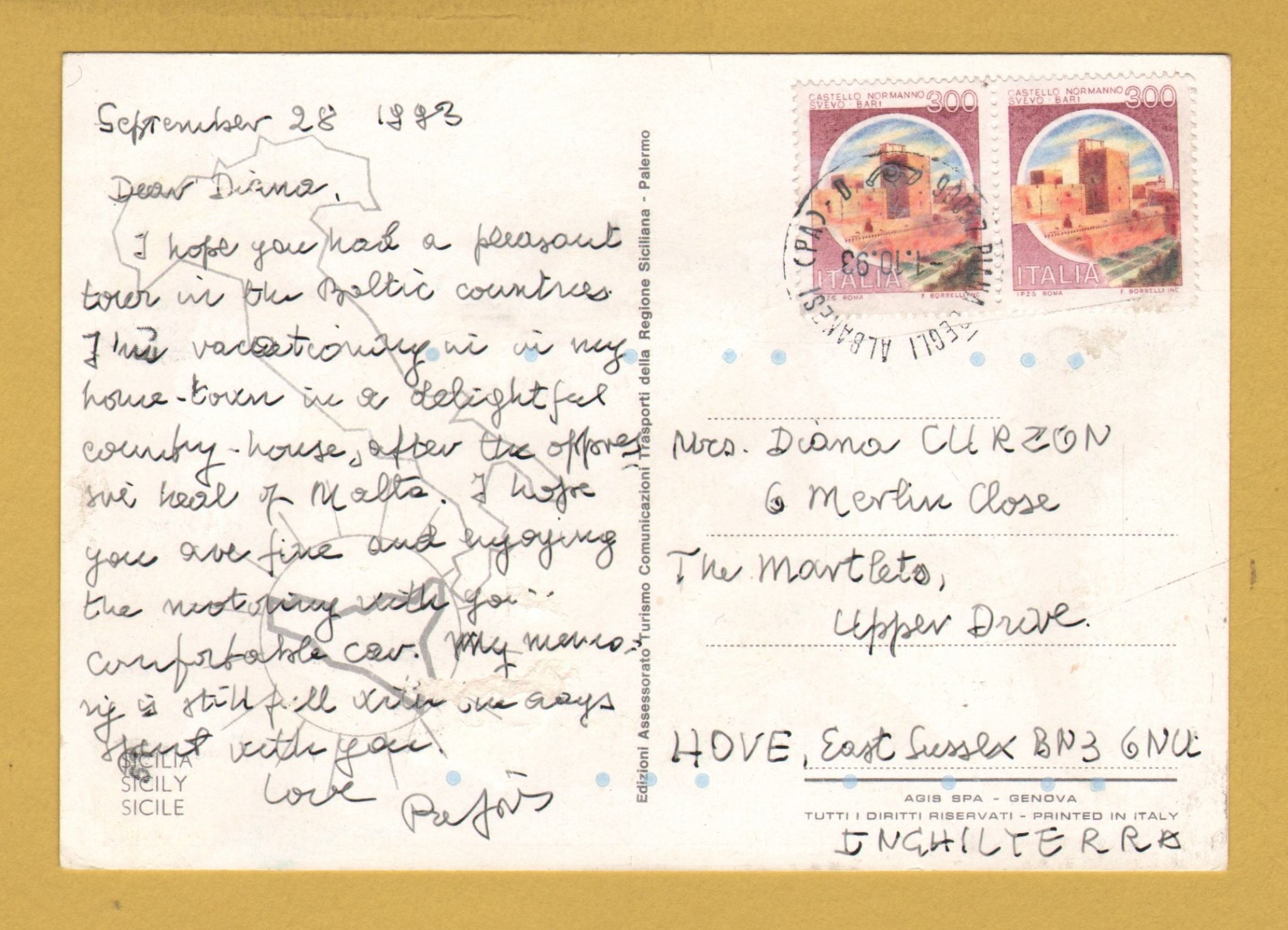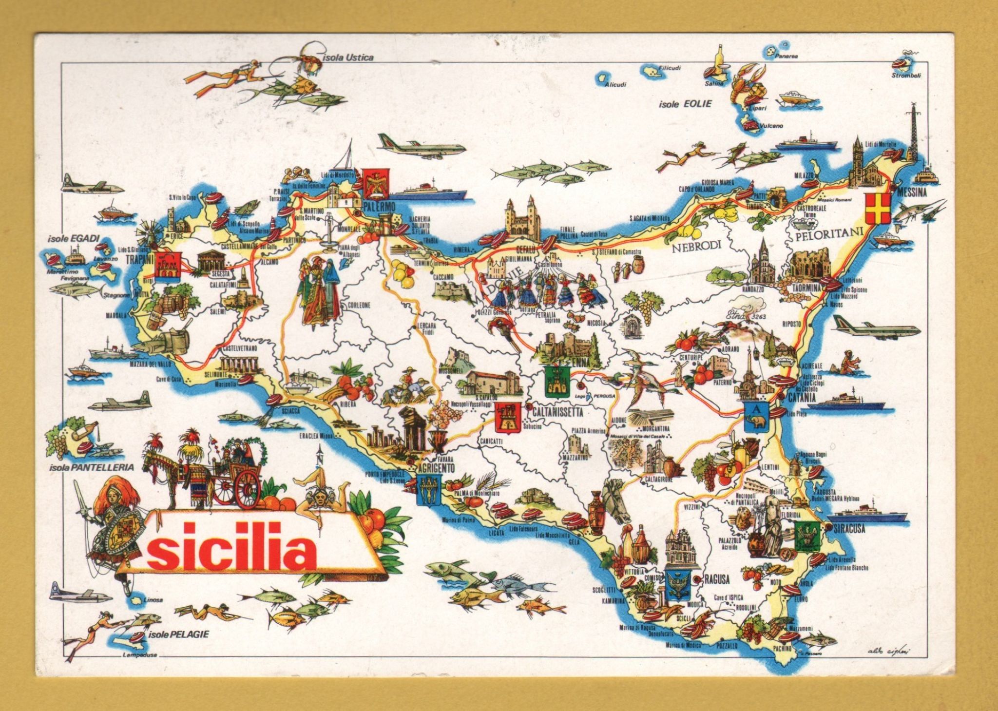 `Sicilia` - Postally Used-1993 - Department of Tourism Postcard `Sicilia` - Postally Used-1993 - Department of Tourism Postcard