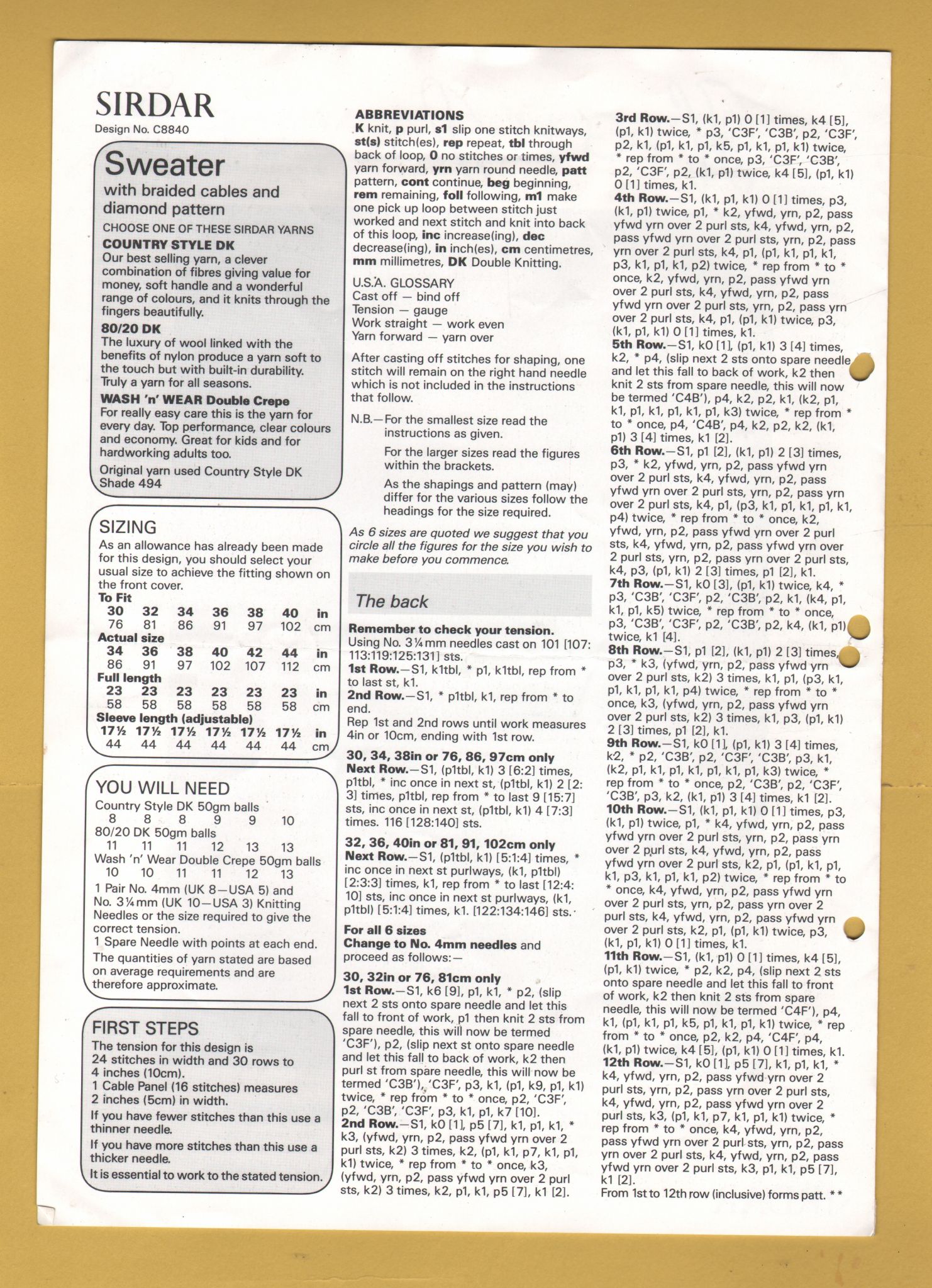 Sirdar - High Style - 30-40" (76-102cm) - DK - Design No.c8840 - Sweater - Knitting Pattern
