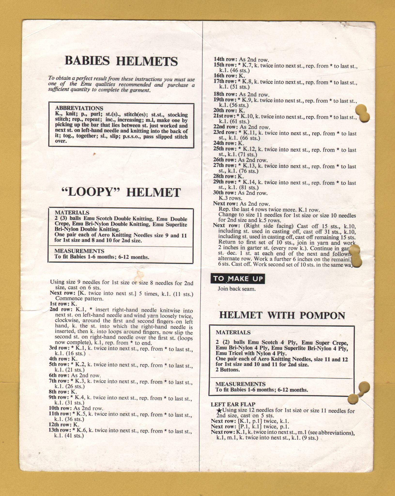 Emu - Double Knitting, 4 Ply - 1 to 12 Months - Design No.8352 - Babies Helmets - Knitting Pattern