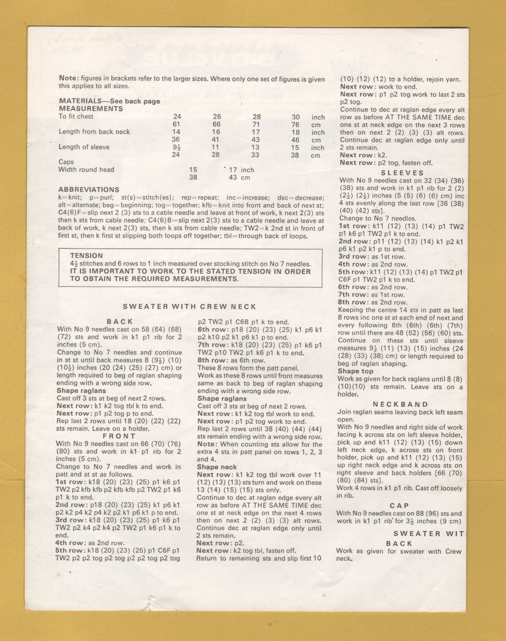 Tags: King Cole, Aran, 24-30", No.KC294, Sweater, Crew Neck, Polo Collar, Cap;Knitting Pattern